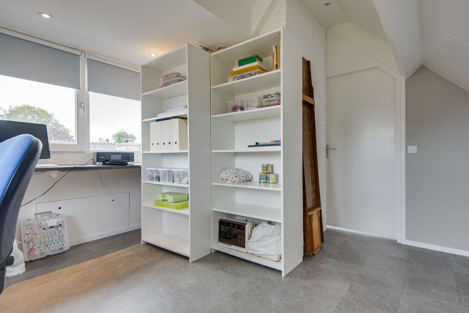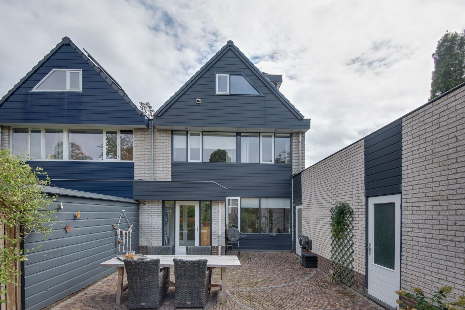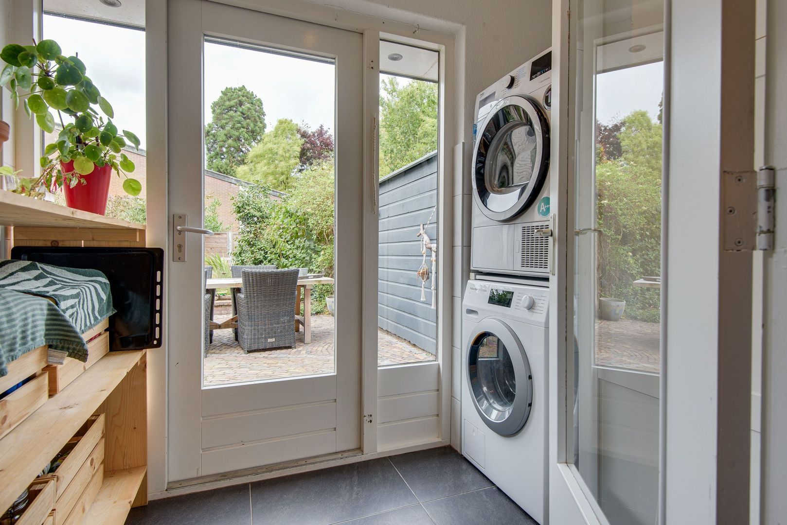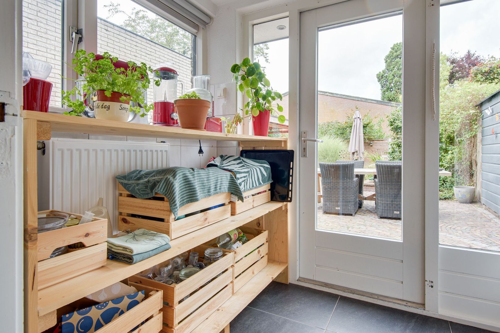 De royale woonkamer is verdeeld in een gezellige zithoek aan de voorzijde met sfeervolle open haard en een ruim eetgedeelte aan de achterzijde, waar je geniet van het uitzicht op de achtertuin. Aansluitend bevindt zich de half open keuken, compleet met een royale keukenopstelling inclusief inbouwapparatuur. Vanuit de keuken is er een doorloop naar de bijkeuken, die toegang biedt tot de besloten achtertuin.