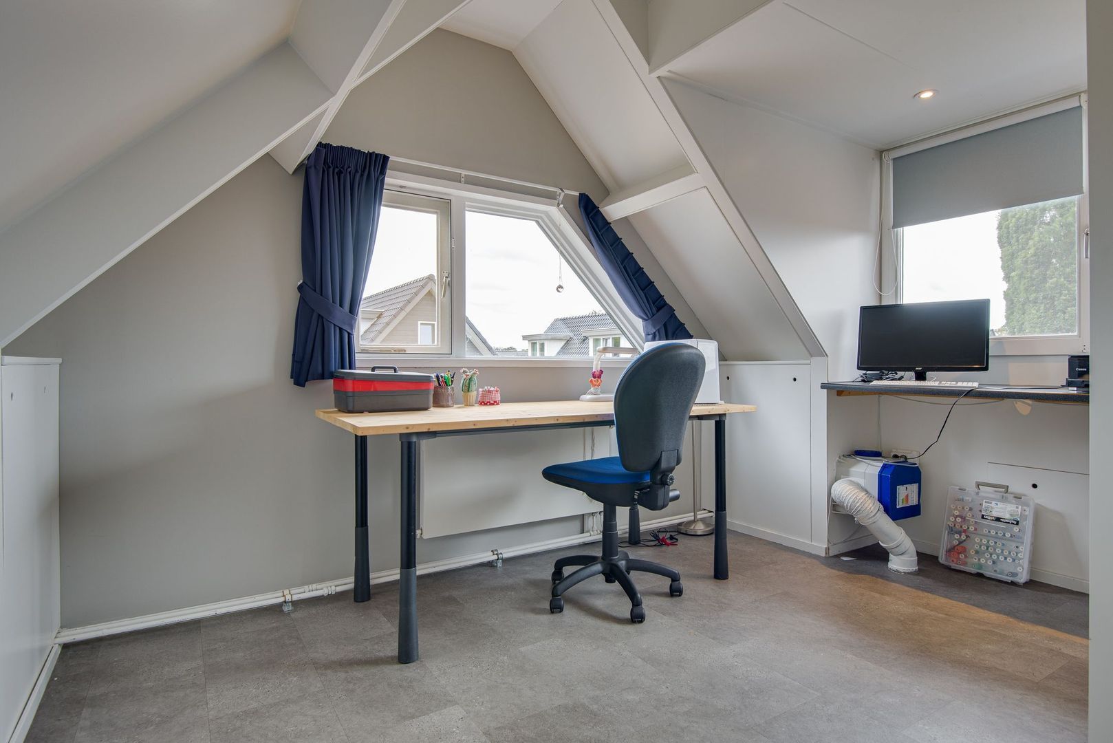 De tweede verdieping beschikt over een groot dakkapel aan één zijde, waardoor er twee ruime slaapkamers zijn ontstaan. Op de overloop van de verdieping is er een wastafelmeubel, handig voor kinderen of logees om zich snel op te frissen. Bovendien is er veel vaste bergruimte aanwezig, waardoor je altijd voldoende plek hebt voor extra spullen."