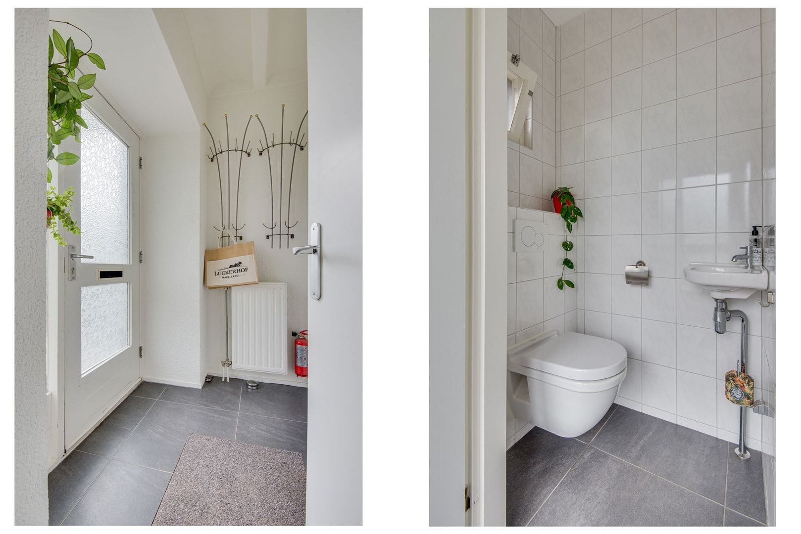 Je stapt binnen in de hal met meterkast die je toegang geeft tot de woonkamer. De woonkamer is een fijne woonruimte die vloeiend doorloopt naar de half open keuken. De lichte keukenopstelling is voorzien van inductiekookplaat, afzuigkap, koelkast, combimagnetron en vaatwasser. Vervolgens kom je in de praktische bijkeuken met de witgoedaansluitingen en toegang naar de achtertuin.