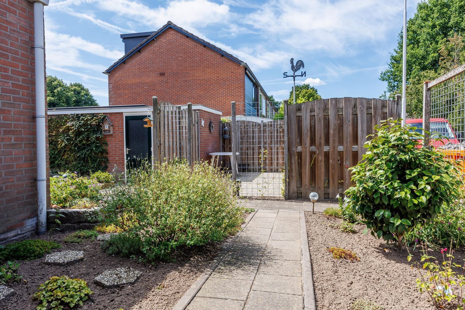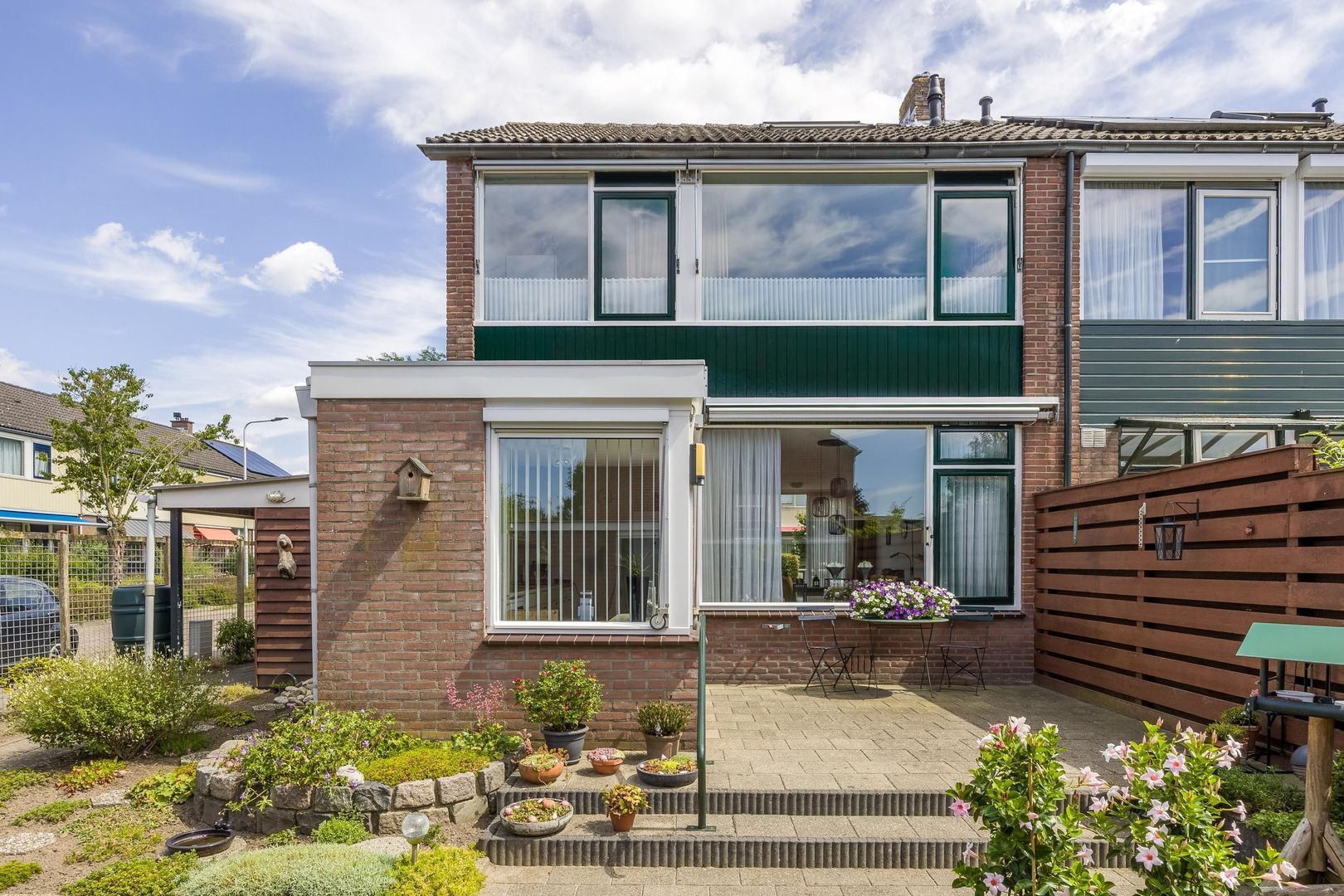 Achtertuin met twee zonneterrassen en vijver, gelegen op het westen. Vrijstaande stenen berging met elektra, welke ook achterom te bereiken is.