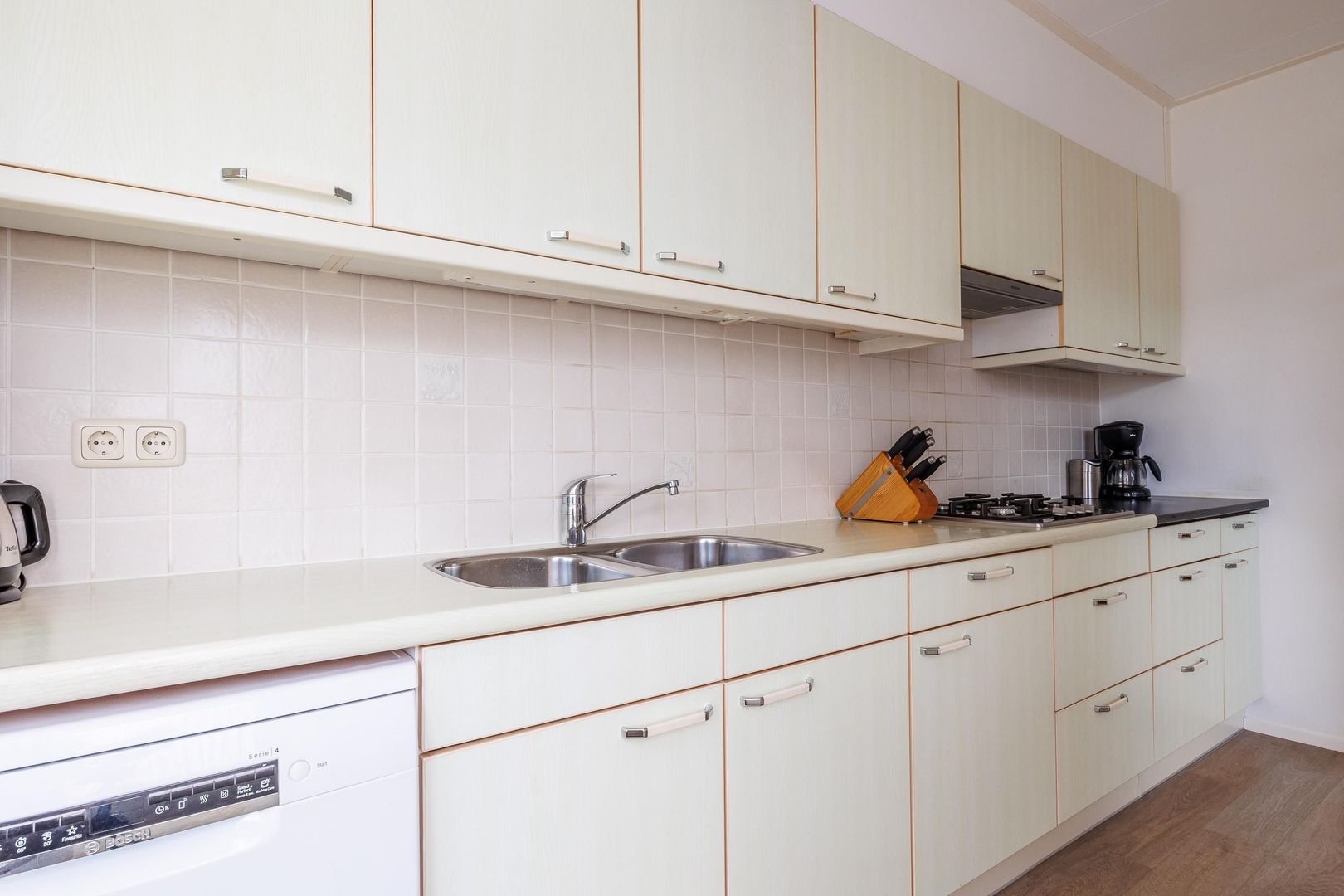 Begane grond: Entree/ hal, gaderobe, toilet met fontein, meterkast met bergruimte onder de trap naar de eerste verdieping. Woonkamer met aansluitend halfopen keuken met rechte opstelling, spoelbak en afzuigkap. De woning is aan de achterzijde uitgebouwd en daar bevindt zich de keuken met ook de aansluitingen voor witgoedapparatuur en een zithoekje.
