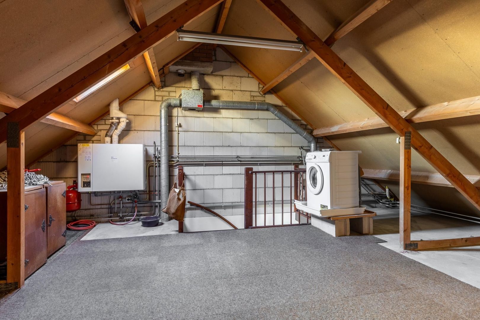 Tweede verdieping: via de vaste trap kom je op de open zolderverdieping met cv-opstelling en de aansluiting voor de wasmachine.