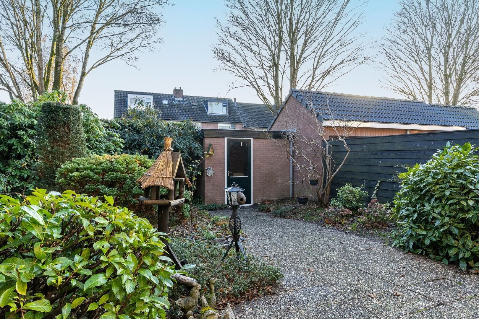 Achter op het perceel staat de berging. Een praktische plek voor het stallen van de fietsen en het opbergen van gereedschap en tuinmeubelen.