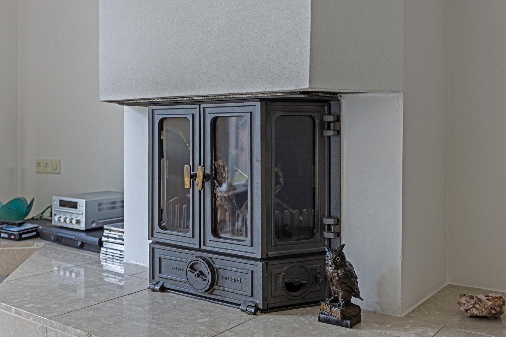 Begane grond: hal, toiletruimte, meterkast, toegang tot de woonkamer met een mooie verdeling tussen eet- en zitgedeelte, openhaard en schuifpui naar de achtertuin. Halfopen keuken met royale keukenopstelling voorzien van gasfornuis, afzuigkap, vaatwasser, oven en koelkast. Inpandige bijkeuken/berging inclusief witgoedaansluitingen.