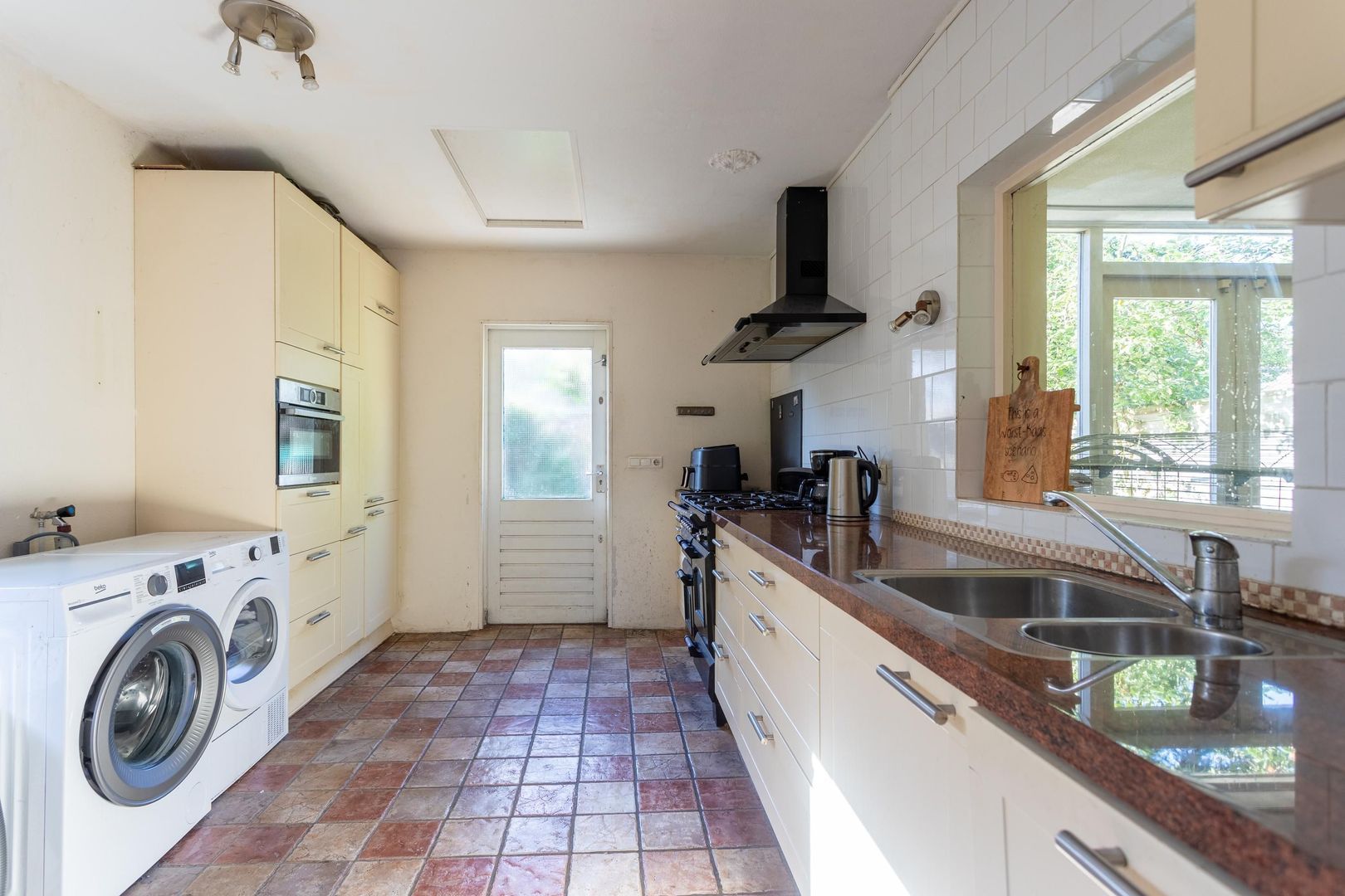 De ruime keuken biedt veel werkruimte. Maar wellicht ga jij deze woning wel verbouwen en betrek je een deel van de keuken bij de woonkamer om daar nog meer ruimte te creëren.