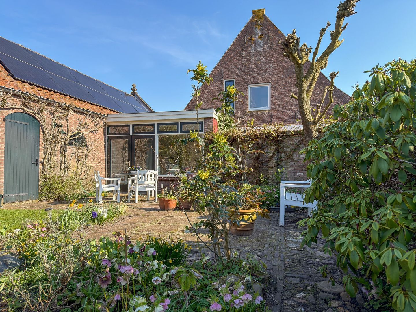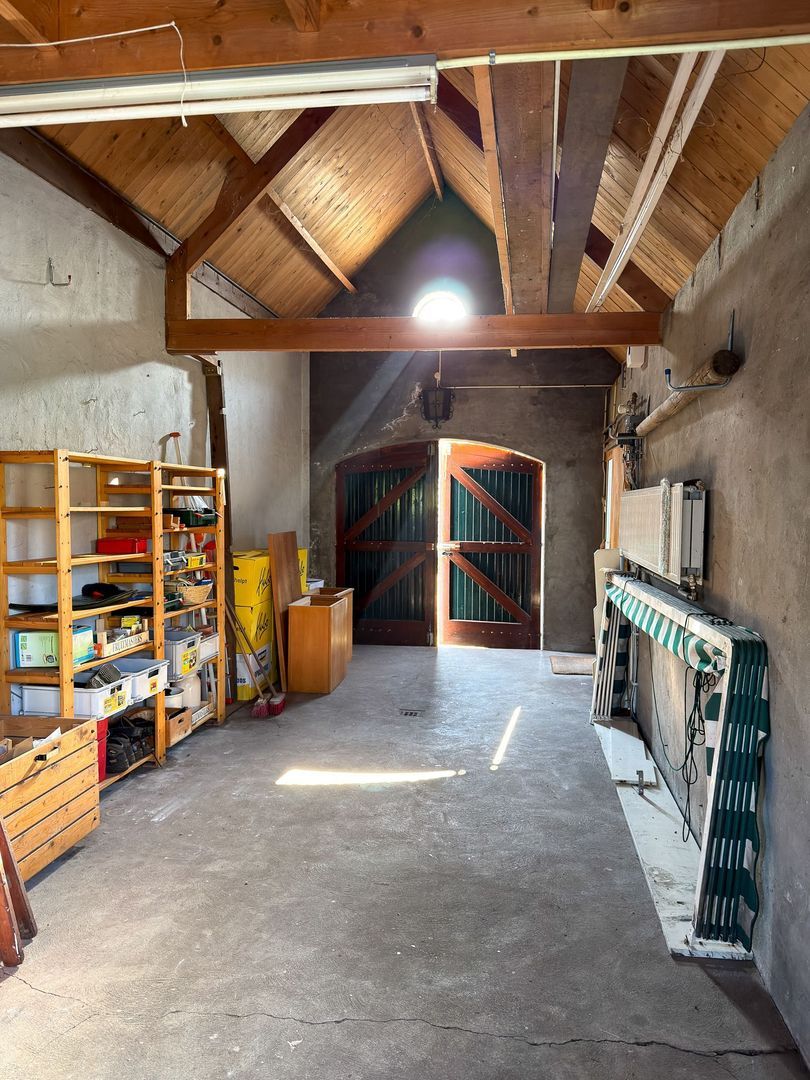 Ook buiten heeft deze woning veel te bieden. De lange oprit langs de woning zorgt voor volop parkeergelegenheid op eigen terrein. Achter de woning ligt een diepe tuin met veel groen, waar je heerlijk rustig zit en volop privacy ervaart. Door de lengte van de tuin en de beschutte ligging is dit een fijne plek om buiten te zitten, te tuinieren of gewoon van de stilte en het groen te genieten. De royale garage met karakteristieke uitstraling is een mooie extra ruimte voor opslag, maar hier zou je ook een kantoor/praktijk/hobbyruimte kunnen realiseren. Daarnaast heeft de garage nog extra bergruimte op de vide en liggen er 10 zonnepanelen op het dak (2024).