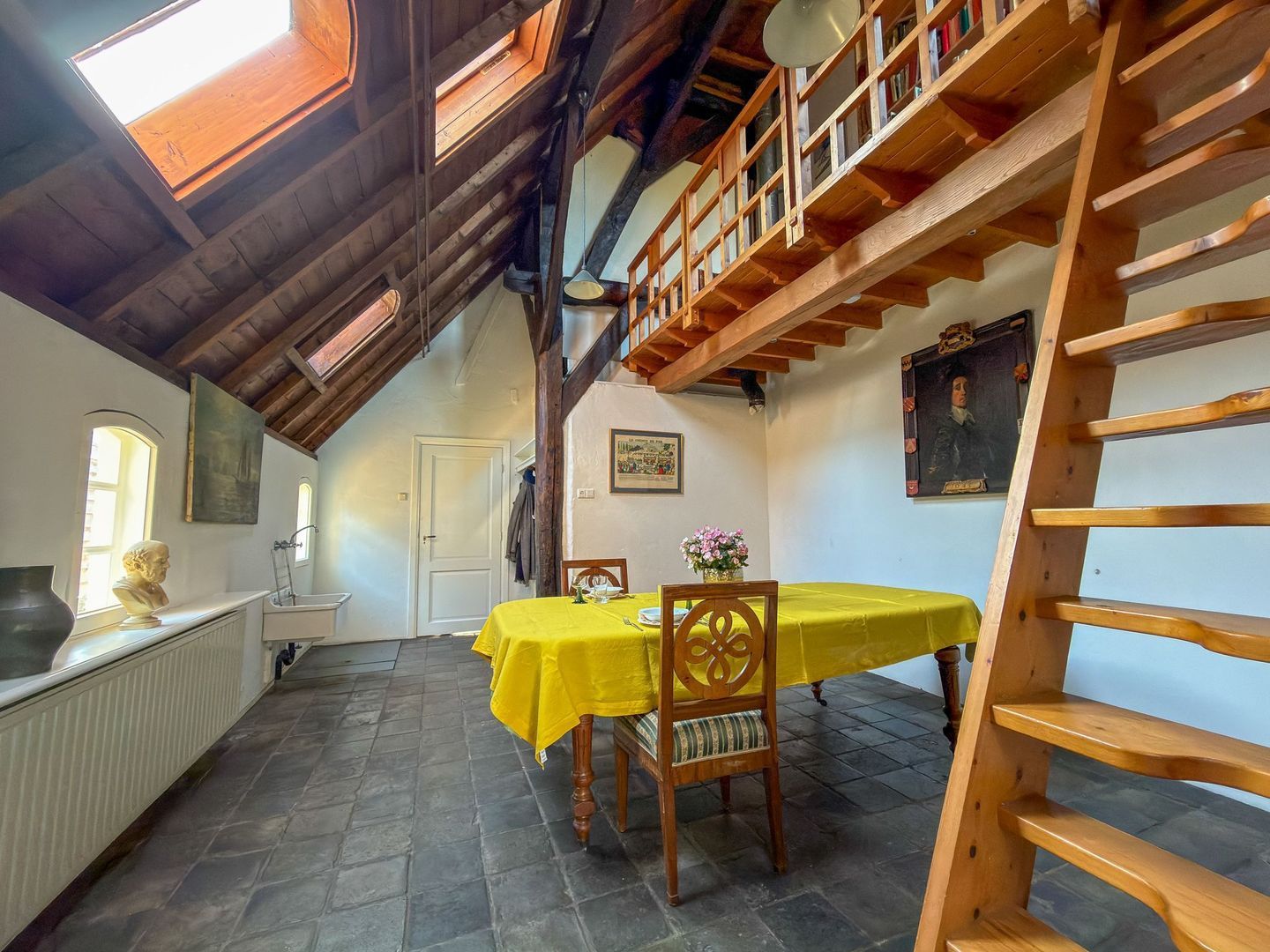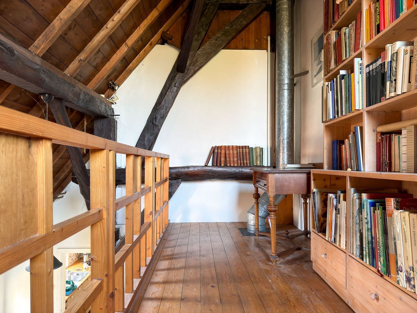 Daarnaast is er nog een grote bevloerde bergzolder, bereikbaar via een vlizotrap. Die extra bergruimte is bijzonder praktisch en maakt het huis compleet.