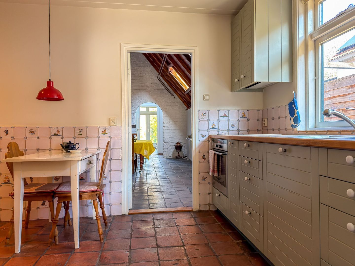 In het oude dorp van Amerongen staat deze karaktervolle woning met een uitstraling die je niet vaak tegenkomt. Dit is een huis met geschiedenis, sfeer en een heel eigen indeling. Zodra je binnenstapt, valt op dat hier veel oorspronkelijke details bewaard zijn gebleven. Oude houten draagbalken, balkenplafonds, karakteristieke tegelvloeren en verschillende hoogteverschillen geven de woning een warme, authentieke uitstraling. Het is een huis dat niet standaard is, maar juist daardoor veel charme en beleving heeft.