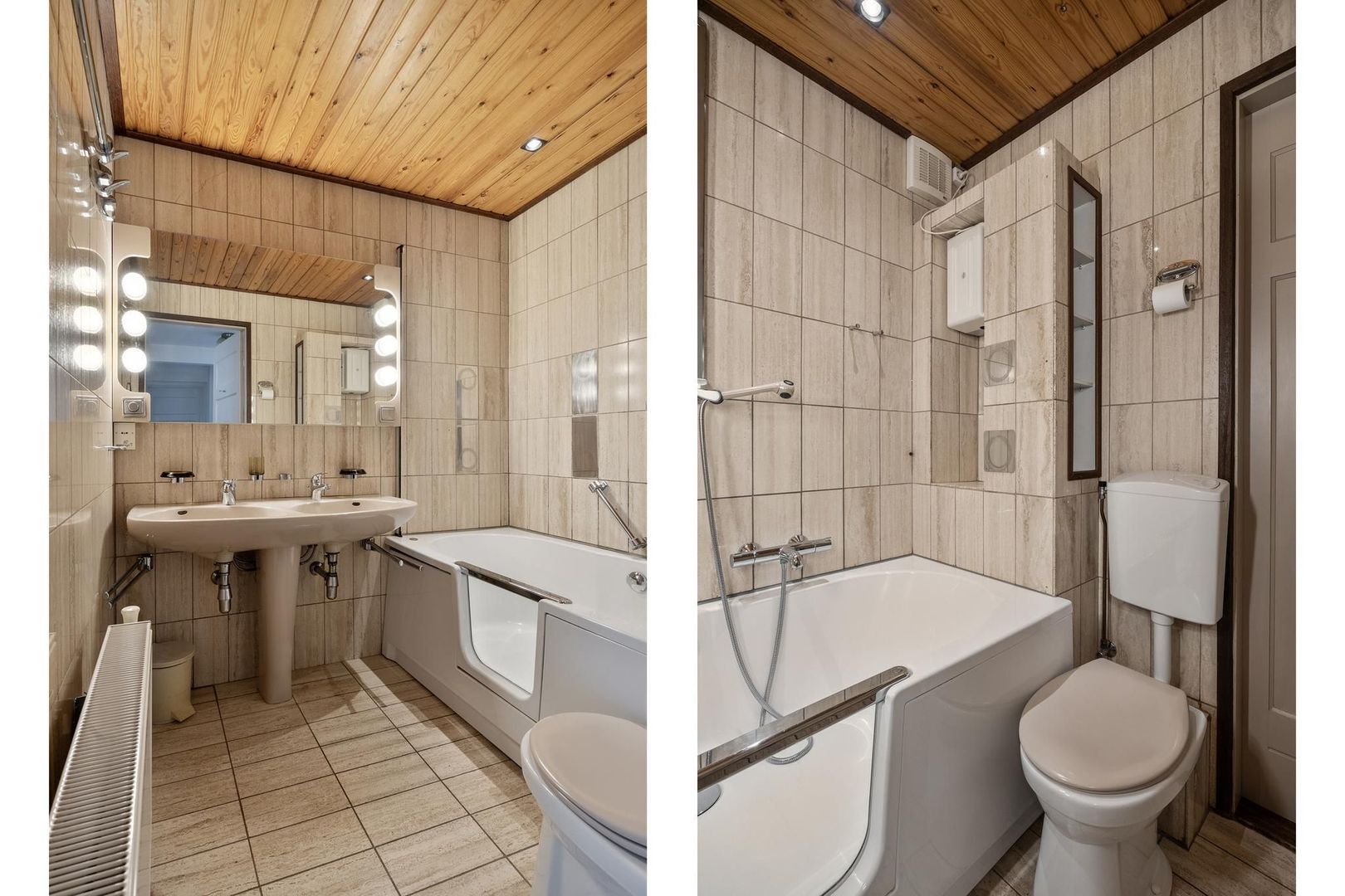 De badkamer is geheel betegeld en voorzien van een ligbad, dubbele wastafel en een 2e toilet. Daarnaast is er een ruime inpandige bergkast aanwezig.