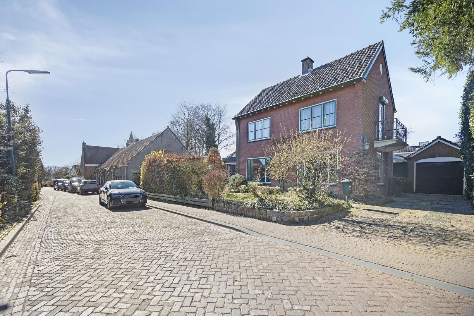 Via de royale oprit waar meerdere auto’s geparkeerd kunnen worden is de voordeur te bereiken.