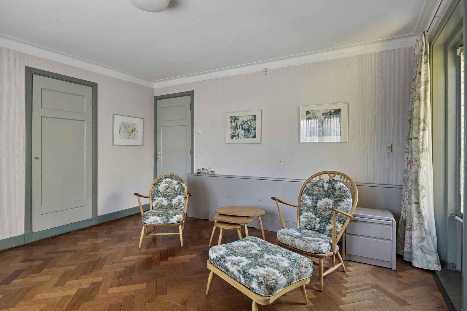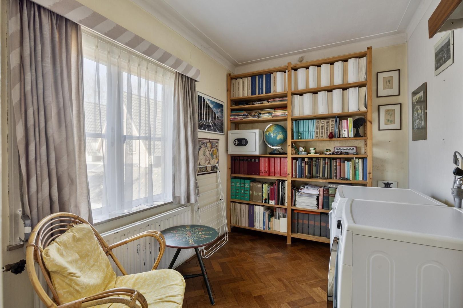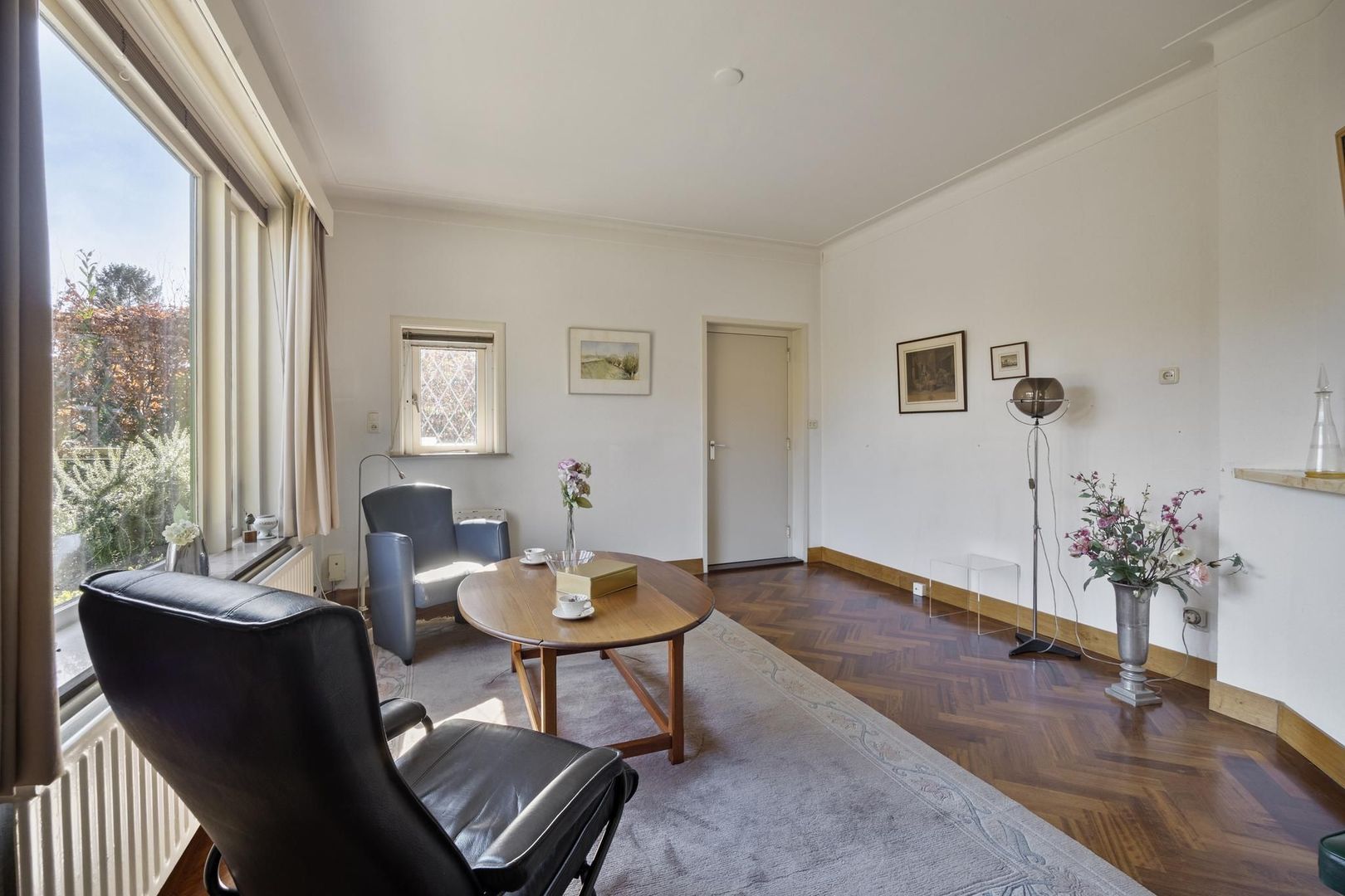 - Zowel op de begane grond als op de 1e verdieping ligt nog de oorspronkelijke parketvloer.