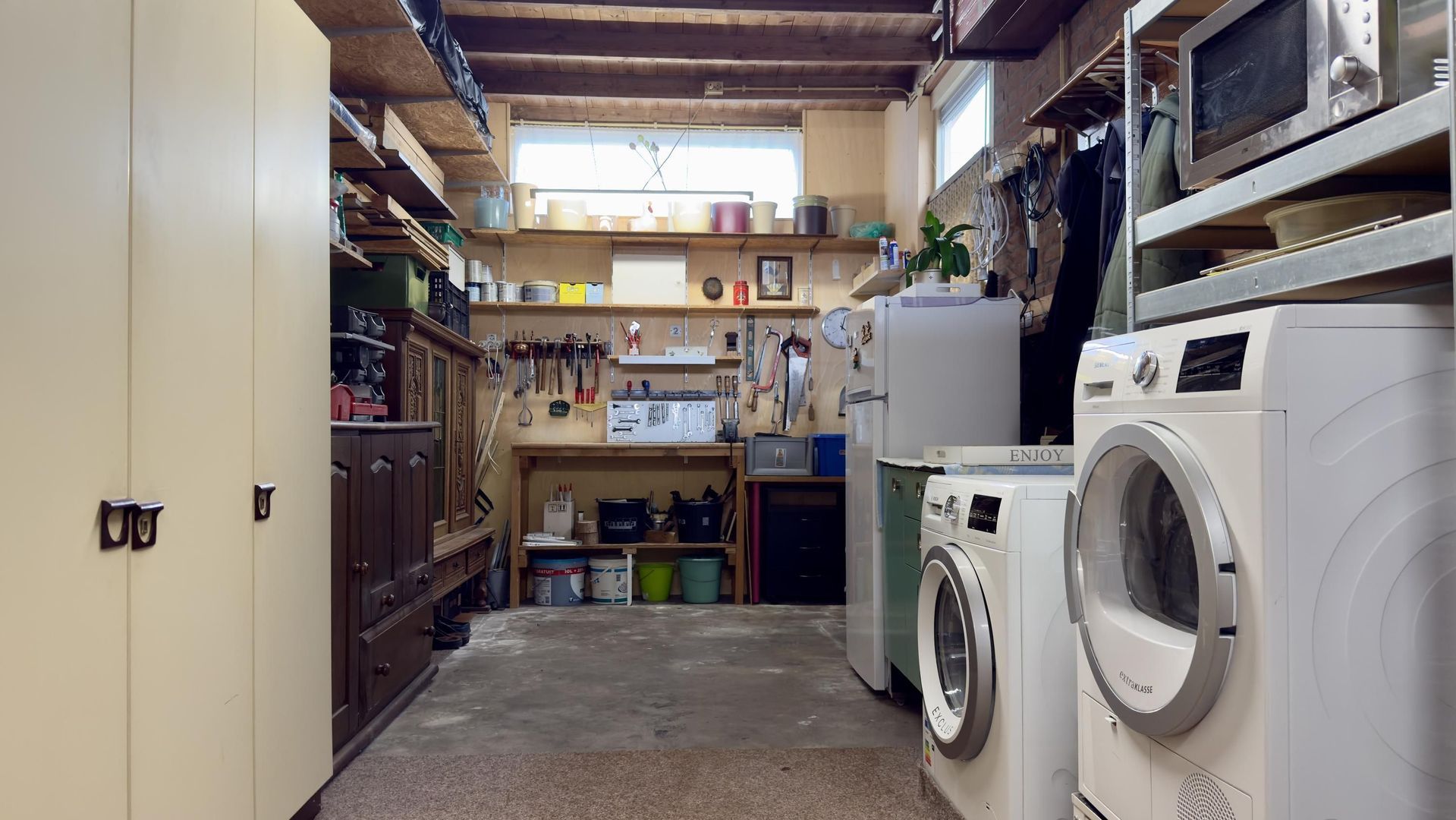 De garage is voorzien van een aansluiting voor de wasmachine en droger. Via een deur aan de achterzijde van de garage loop je zo de achtertuin in.