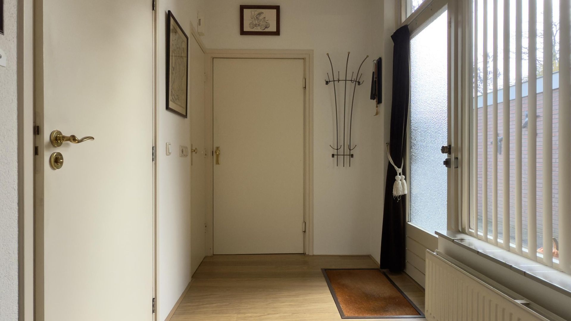 Terug in de hal vind je naast de deur naar de woonkamer een handige en praktische voorraadkast met meterkast.