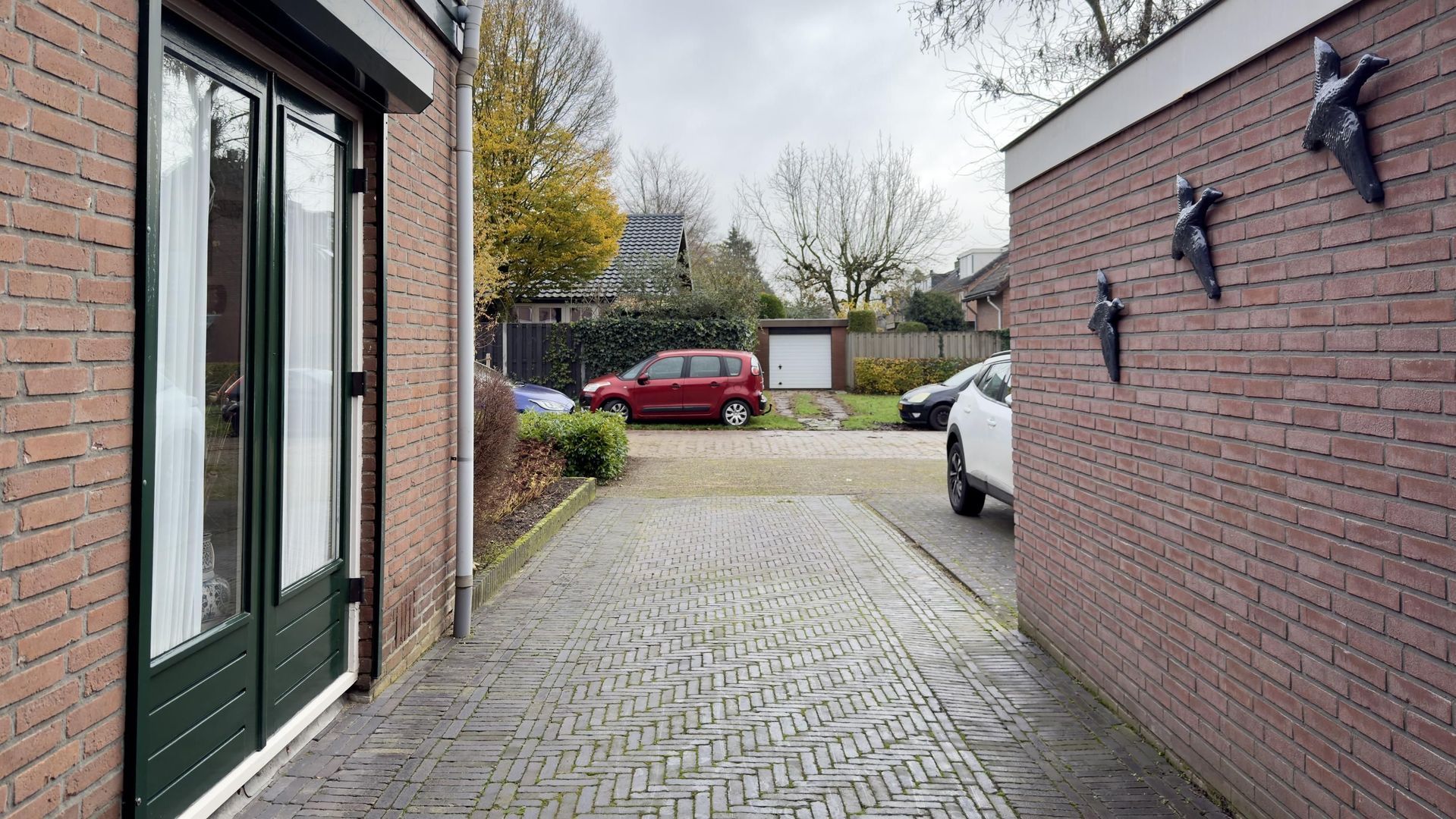Aan de voorzijde ligt een onderhoudsvriendelijke voortuin met daarnaast de riante oprit. Hier kunnen met gemak twee auto’s geparkeerd worden.