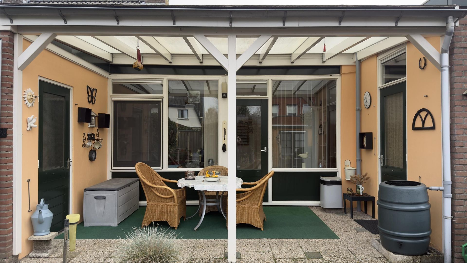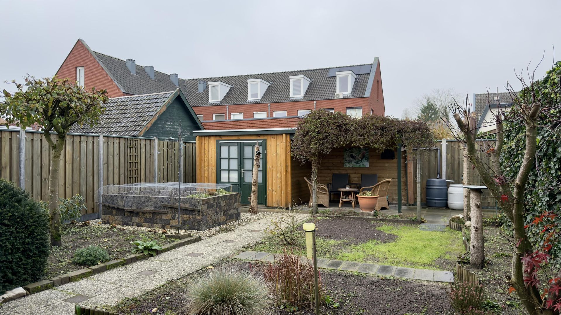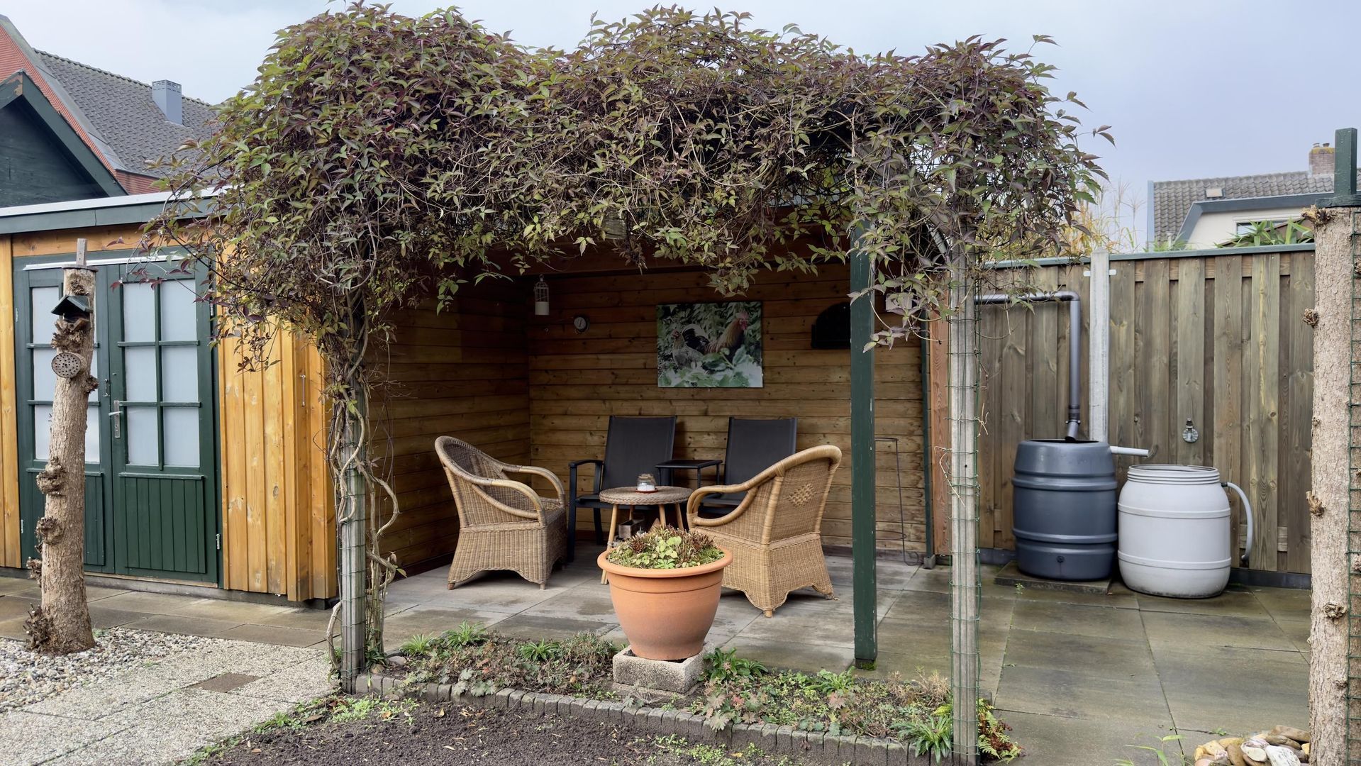 Achter op het perceel staat een extra berging inclusief overkapping, voor het opbergen van tuingereedschap en overige spullen.