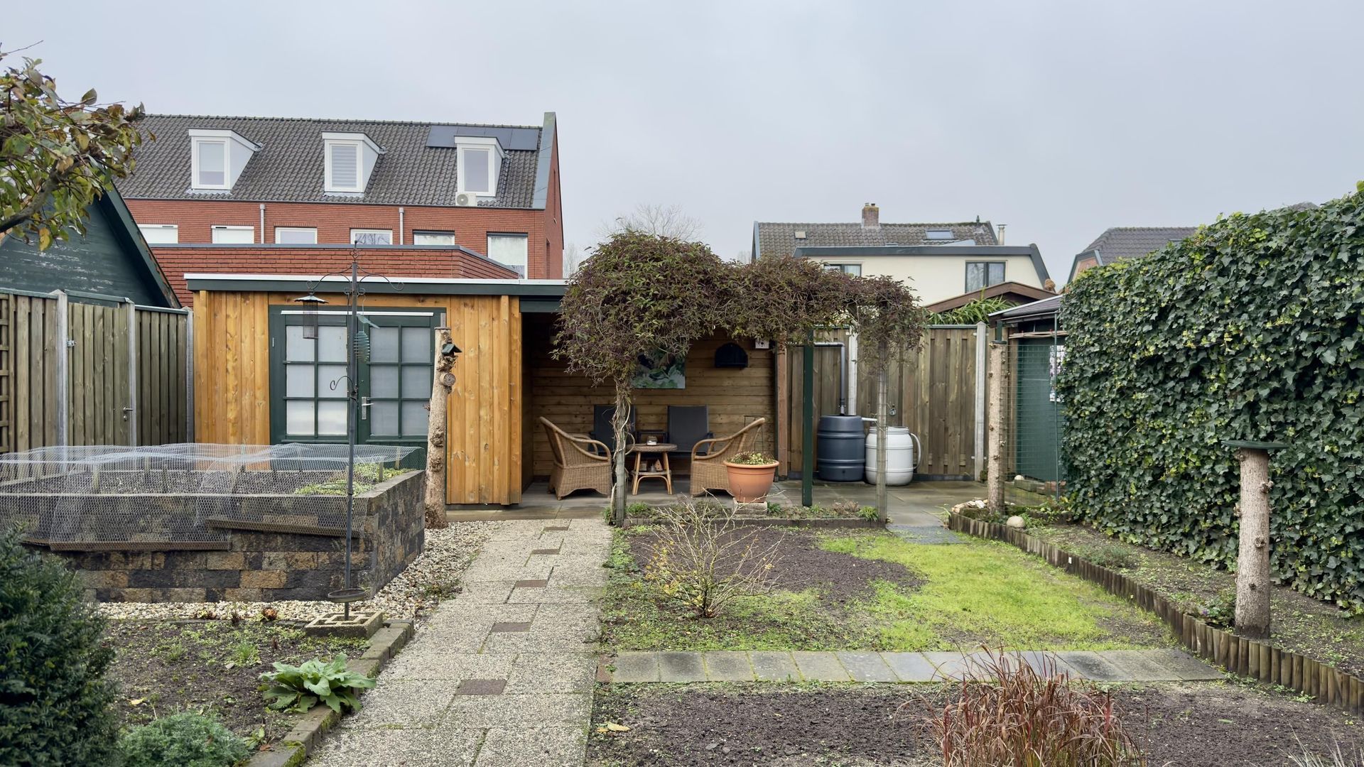 De achtertuin is gelegen op het noordwesten en verzorgd aangelegd met diverse beplanting en heeft meerdere terrassen. Er is voldoende mogelijkheid om zowel in de zon als een plekje in de schaduw te vinden. Er is volop mogelijkheid om al vroeg in het jaar buiten te kunnen zitten. Aansluitend aan de woning is een overkapping waar een fijn zitgedeelte is gecreëerd.