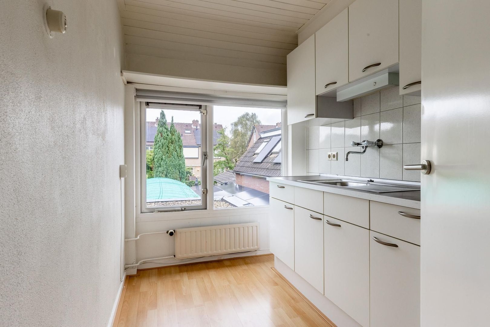 Via de vaste trap kom je op de voorzolder van de tweede verdieping. Een ideale ruimte met een vaste bergruimte om extra spullen in op te bergen. Vervolgens kom je op de lichte slaapkamer voorzien van dakkapel en Velux dakraam.