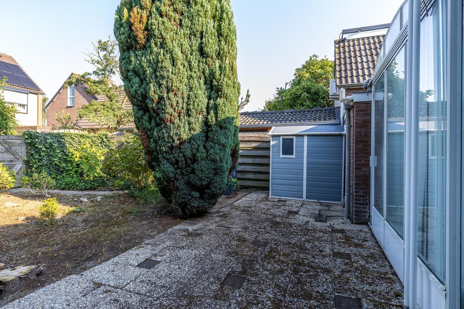 Achtertuinligging is op het noordwesten, waardoor je ’s middags en ’s avonds heerlijk kunt genieten van de zon.