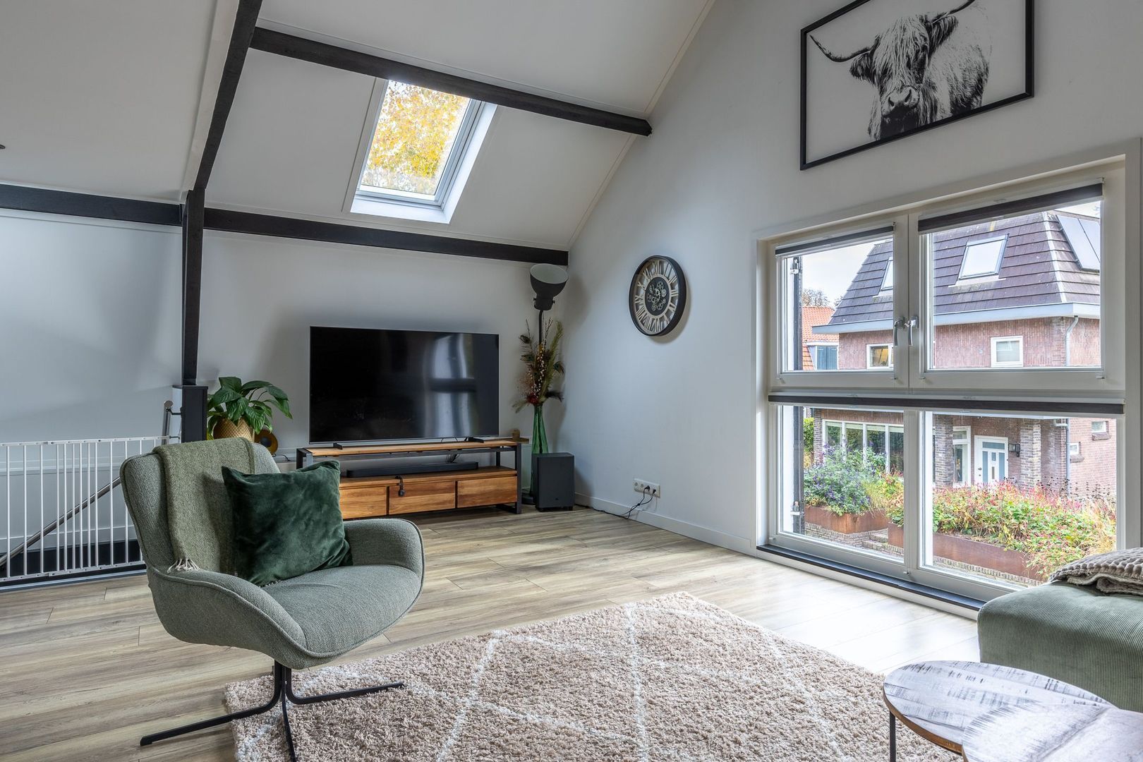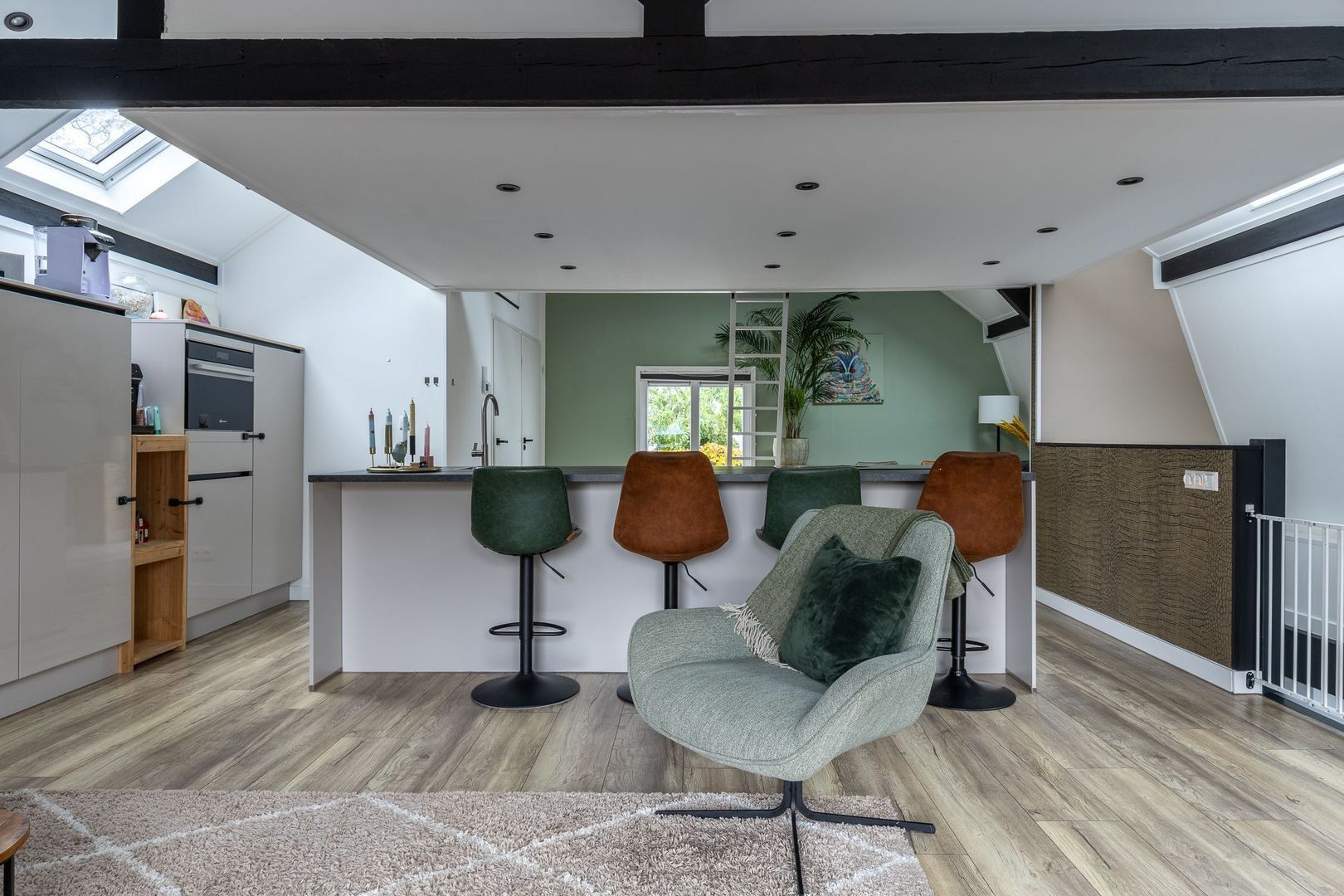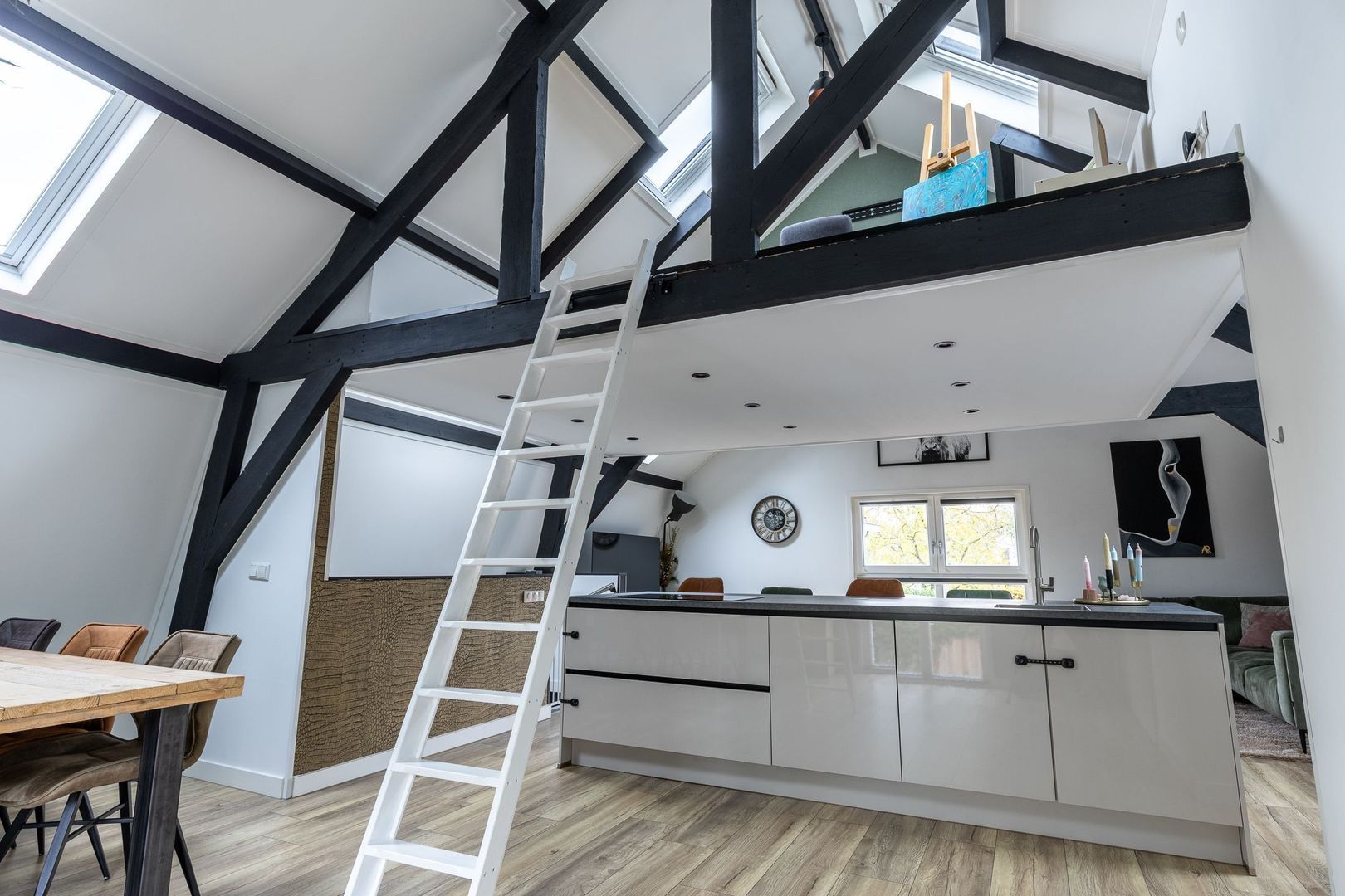 De trap naar de vide is een echte eyecatcher. Maak er een thuiskantoor, relaxplek of creatieve studio van — de huidige bewoner schildert hier prachtige schilderijen. De open ruimte voelt inspirerend en fijn.