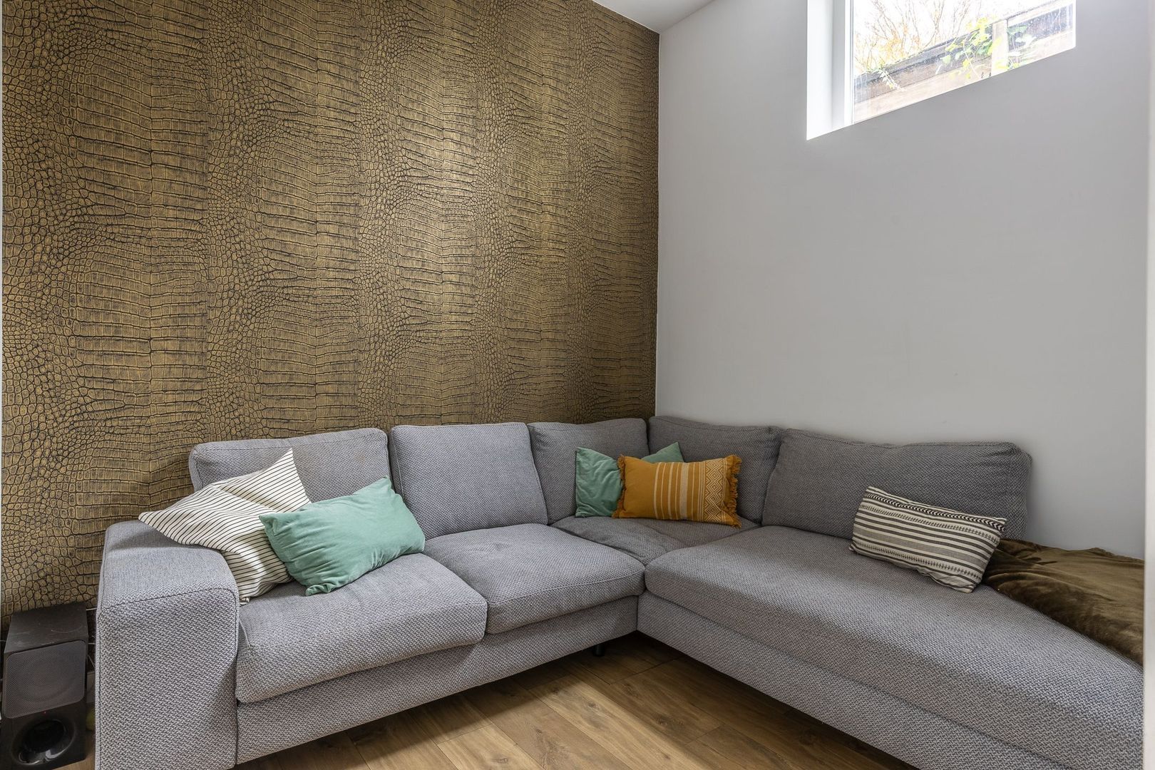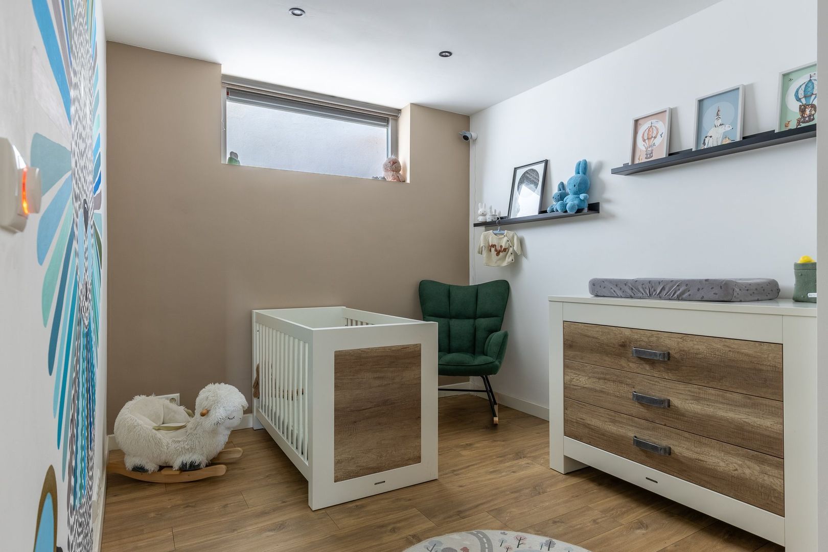 Omdat deze verdieping deels onder maaiveld ligt, voelt het huis speels en verrassend anders dan anders.