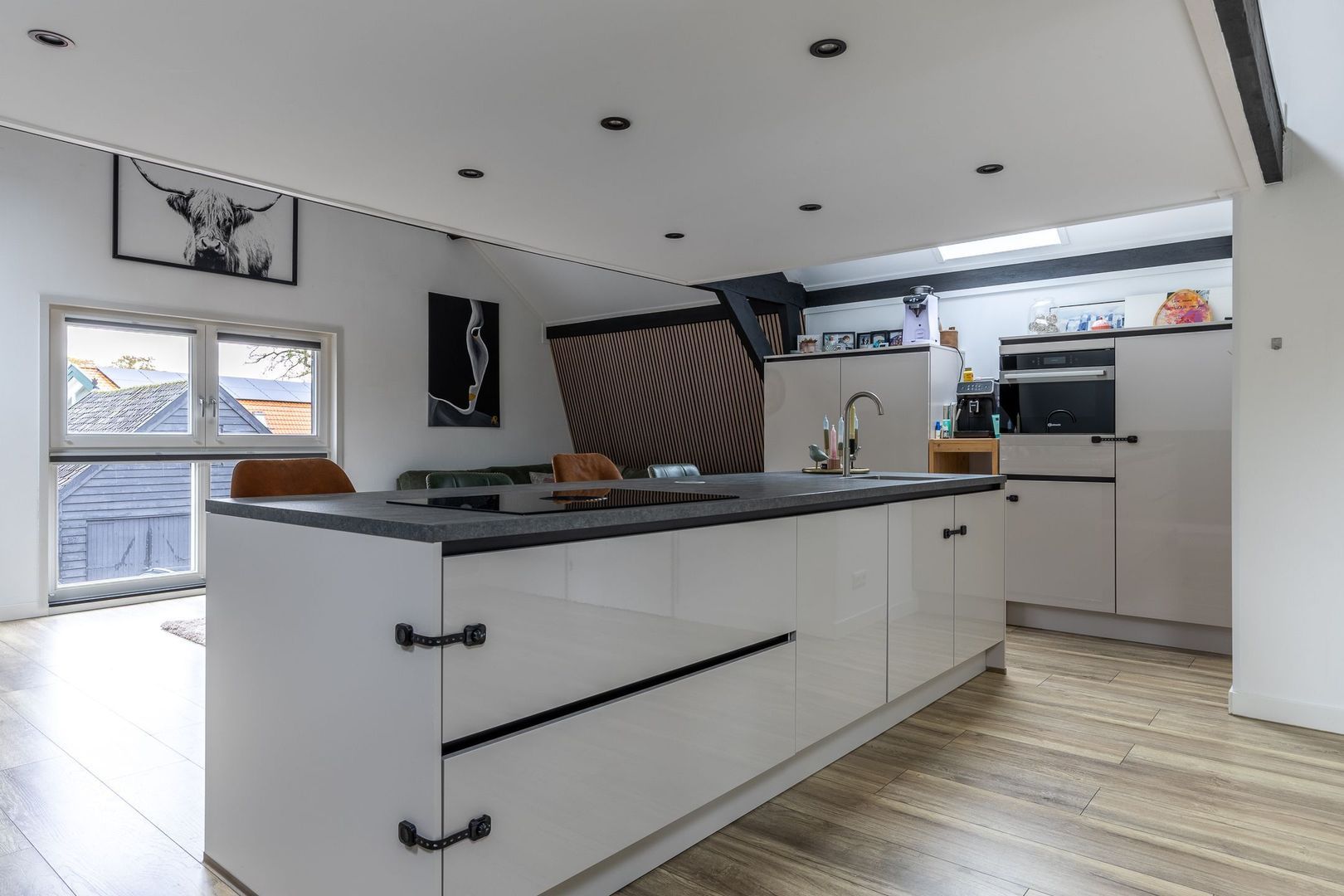 Hier vind je de grote leefkeuken met kookeiland — dé plek waar je samen kookt, borrelt, werkt of gewoon lekker met elkaar kletst.