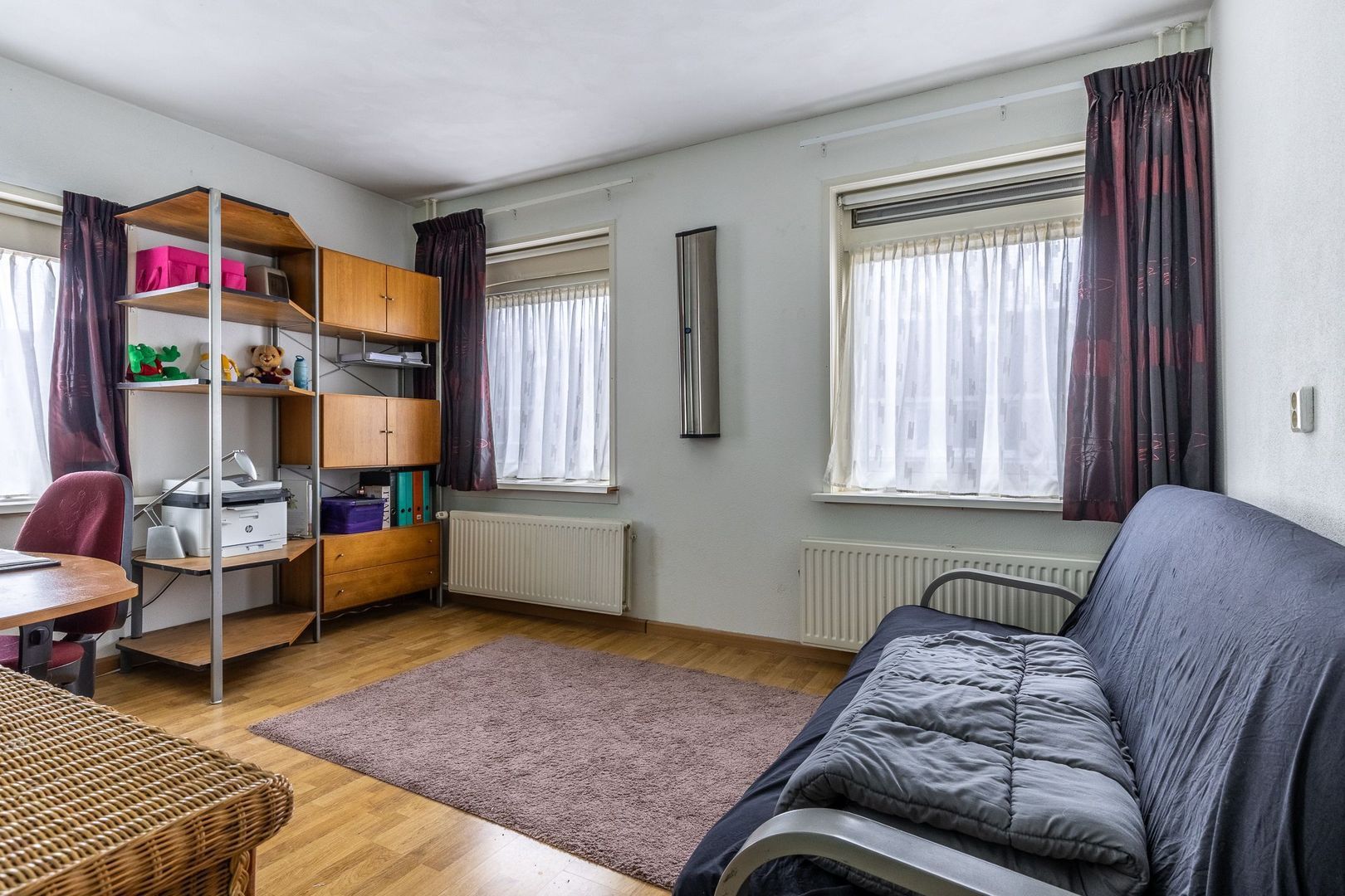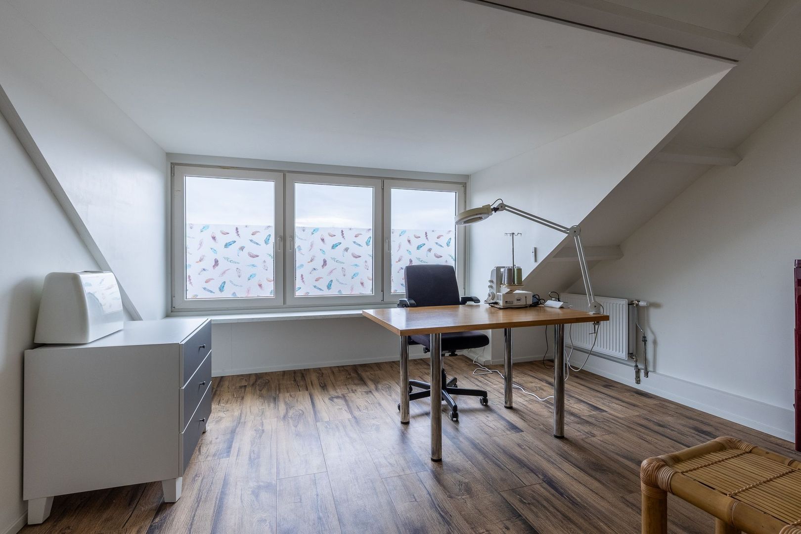 Een derde kamer is gebruikt voor het plaatsen van de wenteltrap naar de tweede verdieping, maar kan nog steeds prima dienstdoen als hobby- of strijkruimte.