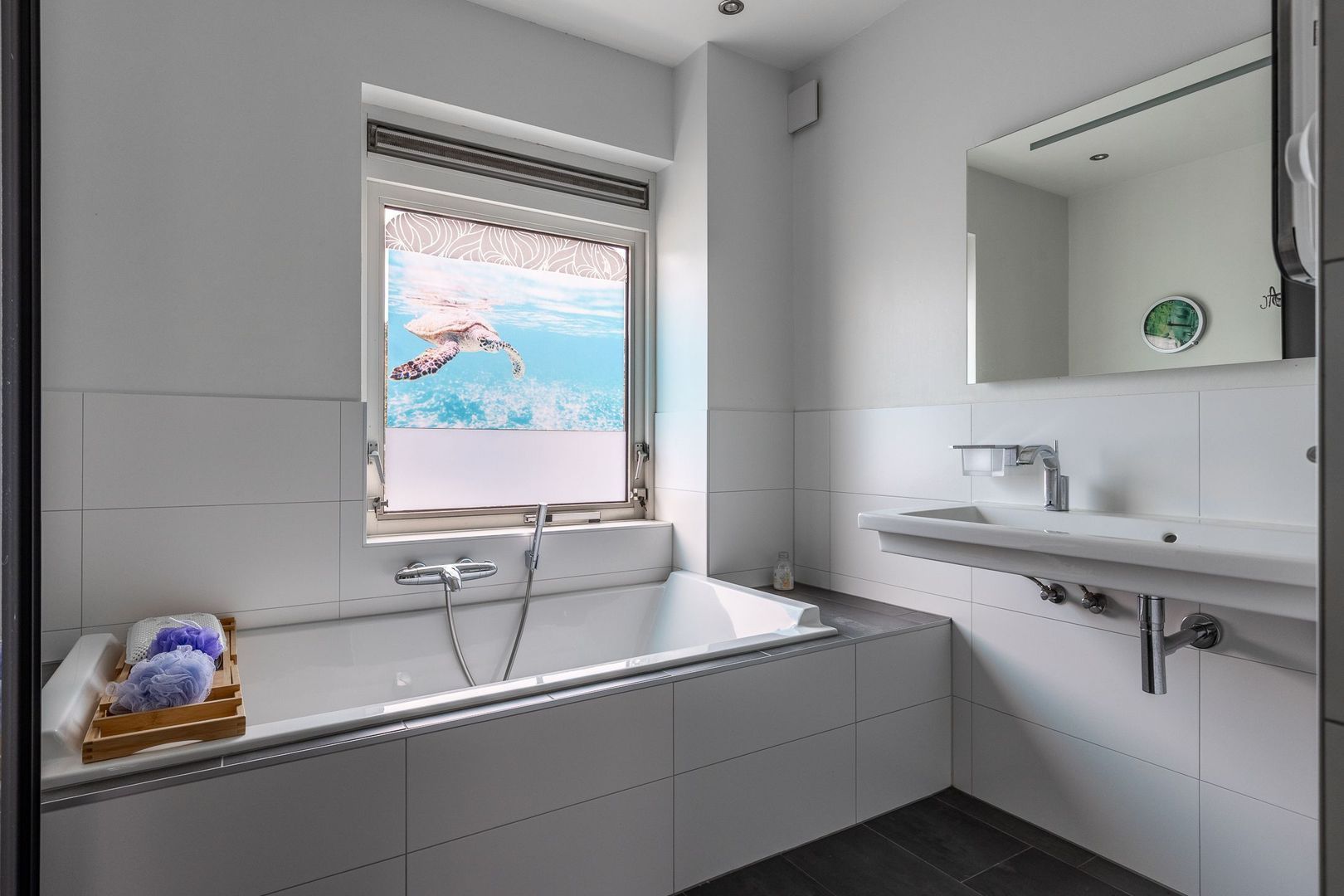 Op de eerste verdieping van de woning zijn twee slaapkamers, waaronder de ouderslaapkamer met balkon aan de voorzijde. Een fijne plek om ’s avonds de ondergaande zon mee te pakken. De badkamer is ruim opgezet en voorzien van een douchehoek, dubbele wastafel en ligbad.