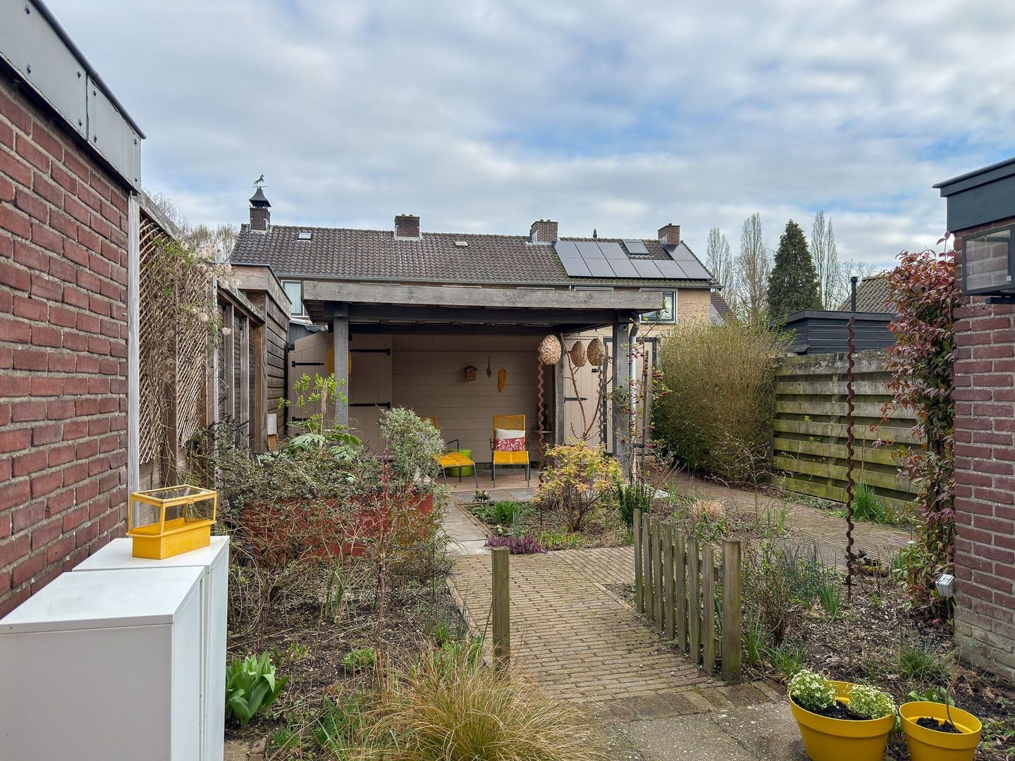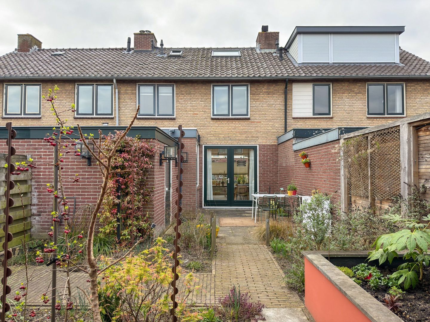Buiten is het minstens zo prettig. De achtertuin is diep en sfeervol aangelegd, met een goede balans tussen groen en bestrating. Achter in de tuin staat een gezellige overkapping, met opbergruimte, waar je beschut zit en waar je al vroeg in het seizoen en tot laat in de avond kunt genieten. Of het nu gaat om een kop koffie in de ochtendzon of een lange zomeravond met vrienden: hier zit je goed.