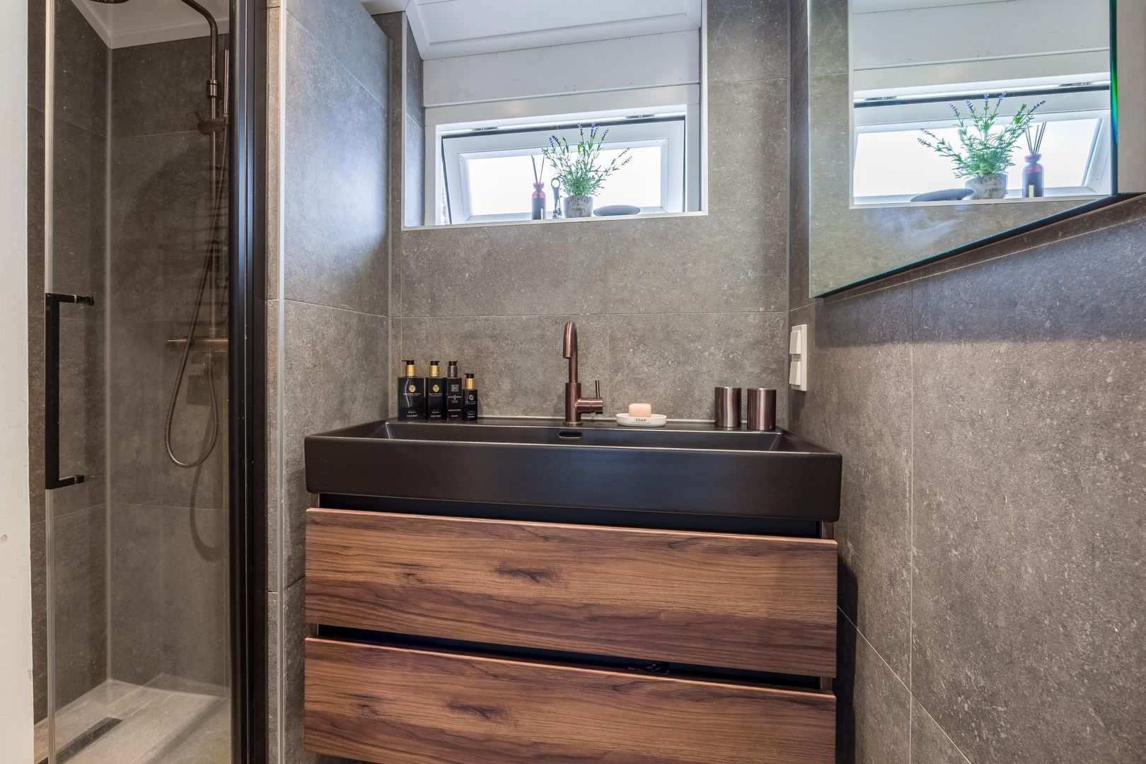 Op de eerste verdieping zijn er drie slaapkamers aanwezig. De ouderslaapkamer en de slaapkamer aan de achterzijde beschikken beide over een vaste kast, wat zorgt voor extra bergruimte en gemak. Op dit moment is de kleinste slaapkamer in gebruik als walk-in closet, maar kan uiteraard ook als slaapkamer, logeerkamer of werkkamer worden gebruikt. De stijlvolle badkamer is ingericht met een douche en een fraai wastafelmeubel. Via een vlizotrap bereik je de zolderberging, ideaal voor het opbergen van seizoensspullen en andere zaken die je niet dagelijks nodig hebt.