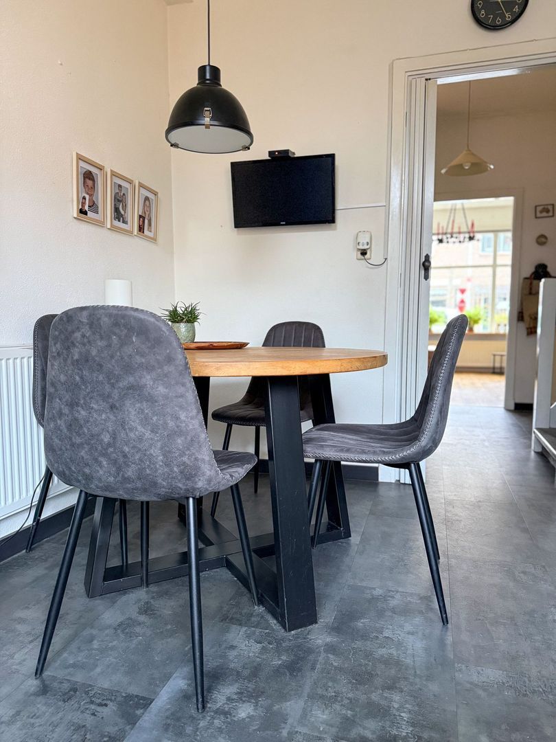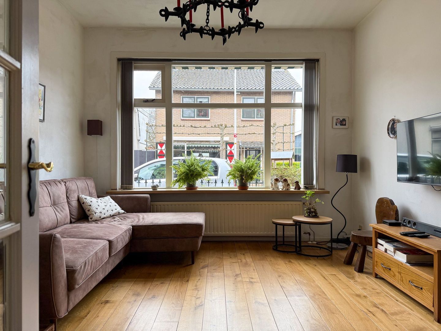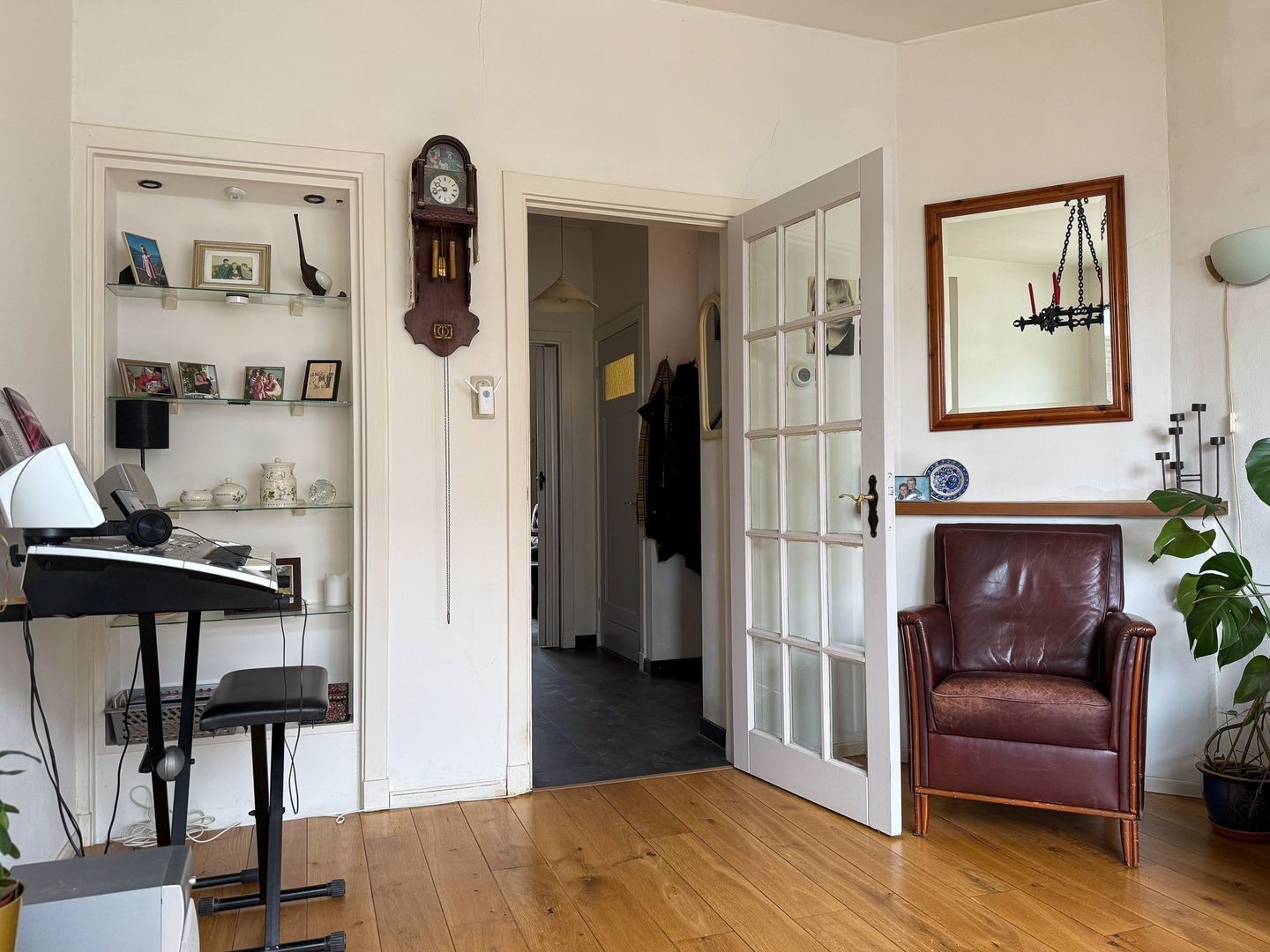 Als je binnenkomt, stap je de hal in – echt het centrale punt van het huis. Hier vind je de meterkast, het toilet, de trap naar boven en de deuren naar de woonkamer, keuken en kelder. Je hangt je jas op, loopt door en staat meteen in de lichte woonkamer aan de voorzijde. Dankzij het grote raam kijk je prettig de straat in. Ooit brandde hier een open haard; de aansluiting is nog aanwezig. Wil je weer een haard? Dan kun je die relatief eenvoudig terugbrengen voor extra sfeer. De woonkamer biedt genoeg ruimte voor een royale zithoek.
