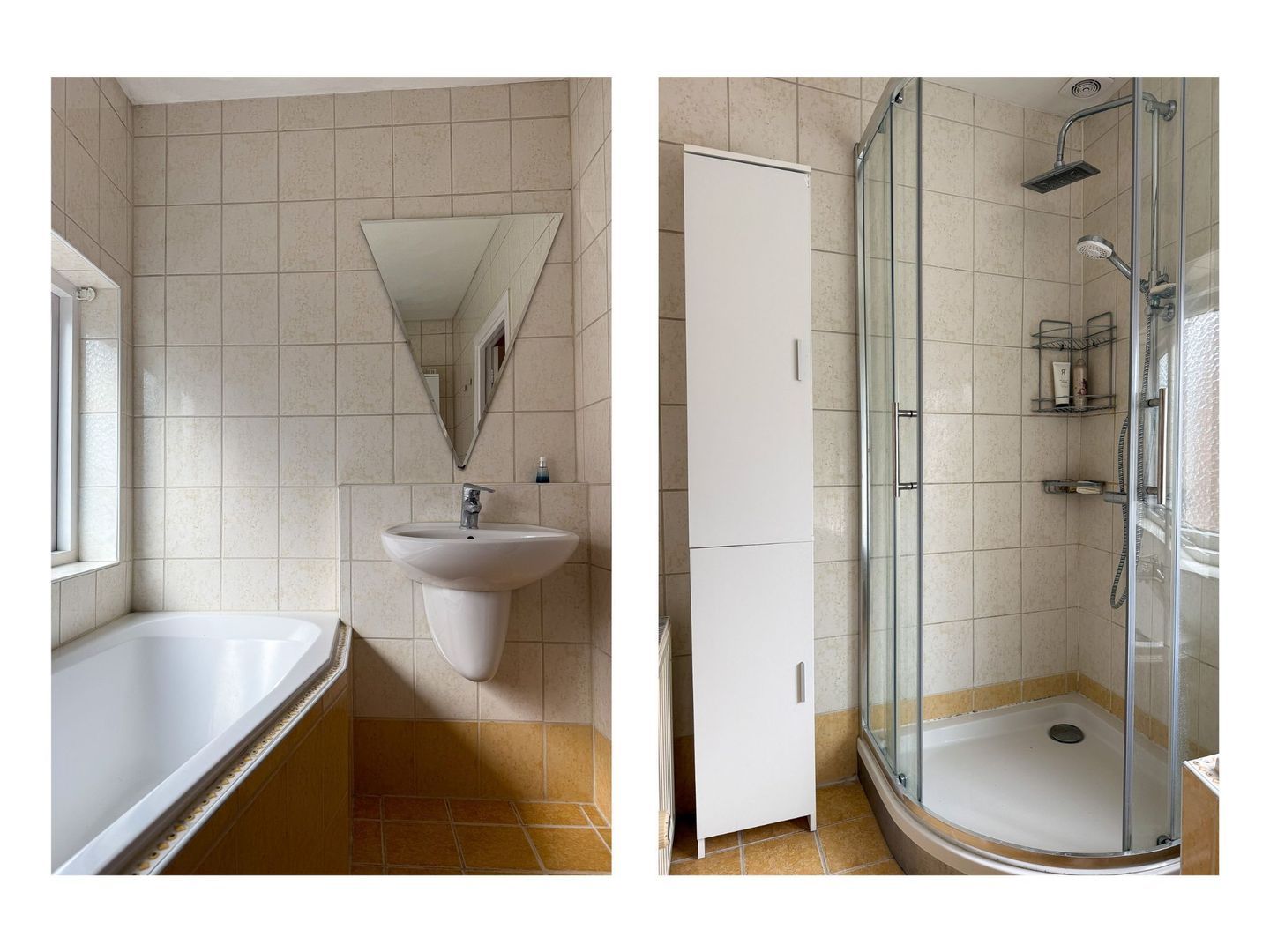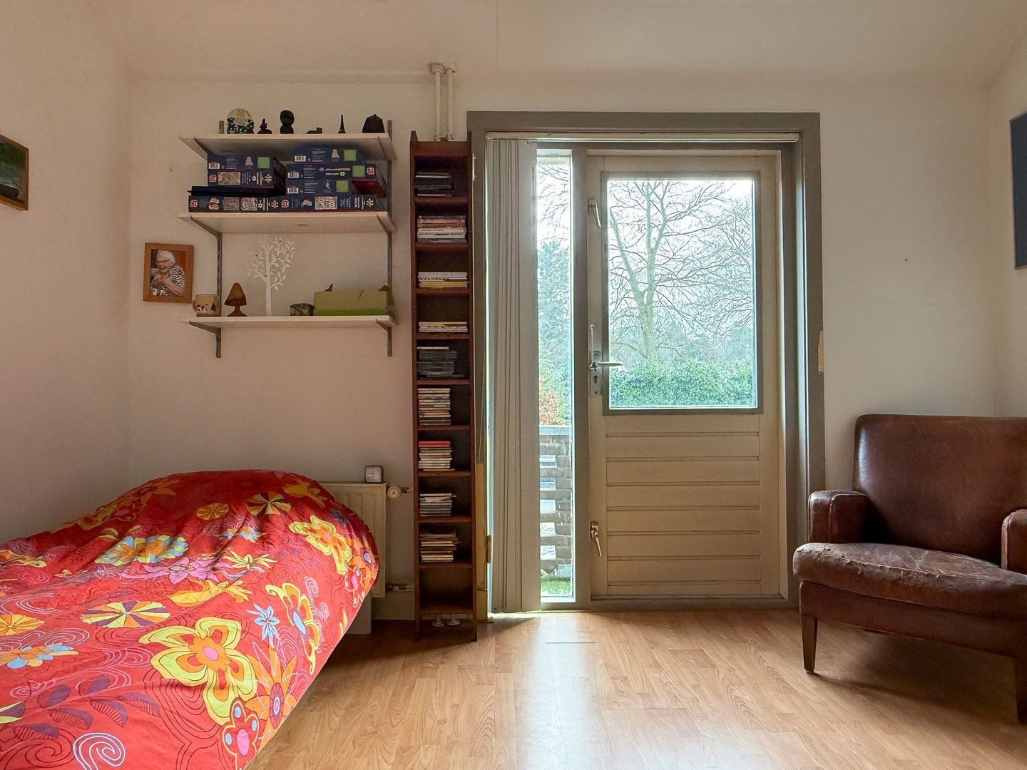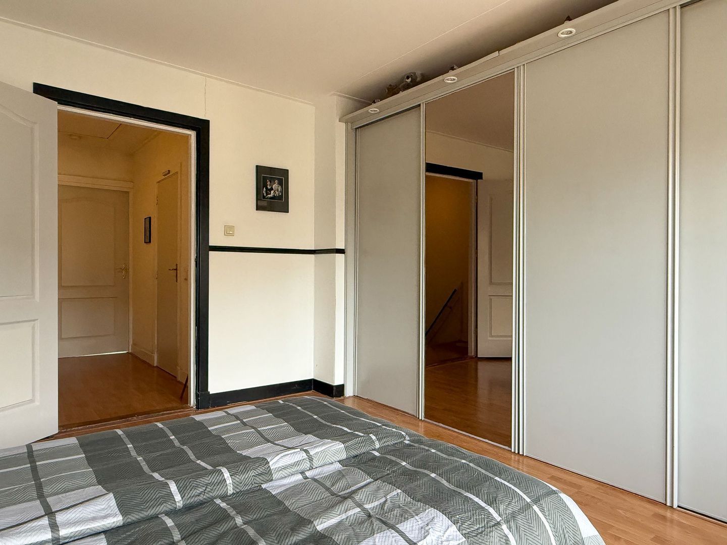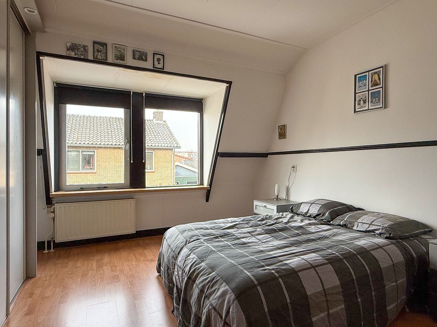Op de eerste verdieping zijn twee slaapkamers en de badkamer. De slaapkamer aan de voorzijde heeft een dakkapel, waardoor de kamer lekker licht is en goed in te delen met een bed, kast en eventueel een werk- of speelhoek. Aan de achterzijde ligt de tweede slaapkamer, met een deur naar het balkon. Hier kijk je uit over de achtertuin; een fijne plek om even te zitten met een kop koffie in de ochtendzon of om de dag rustig af te sluiten. De badkamer is licht en compleet, met een ligbad, douchecabine en wastafelmeubel.