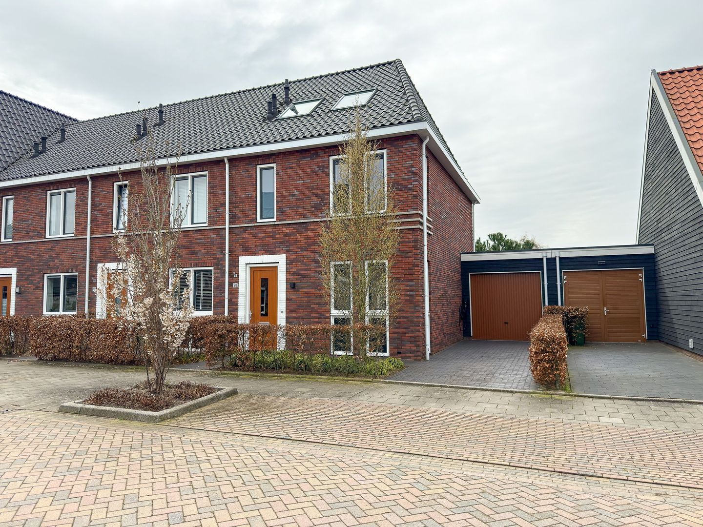 Bij aankomst valt direct de verzorgde uitstraling op. De brede oprit biedt ruimte voor parkeren op eigen terrein en de garage zorgt voor extra bergruimte. Ook is het mogelijk om hier een praktijk of kantoor aan huis te realiseren.