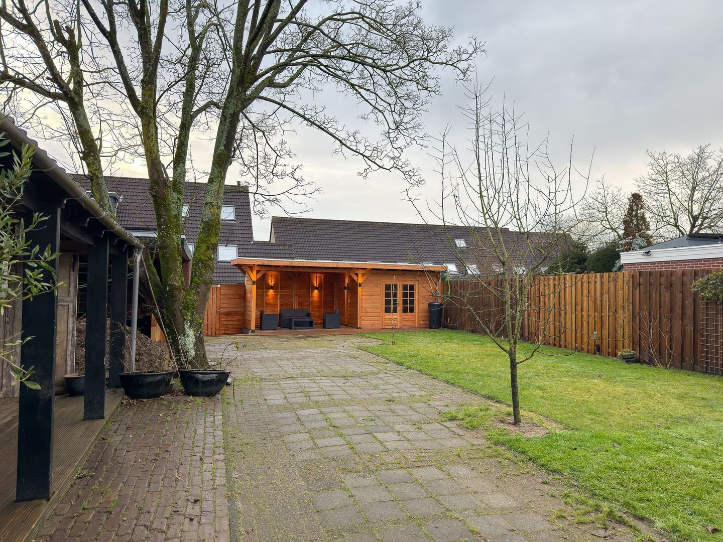 Op het dak van een van de overkappingen liggen sinds 2023 tien zonnepanelen. Een dikke plus aan deze woning om de maandelijkse energiekosten te verlagen. Kortom: deze tuin biedt het allemaal, hier geniet je echt het hele jaar door.