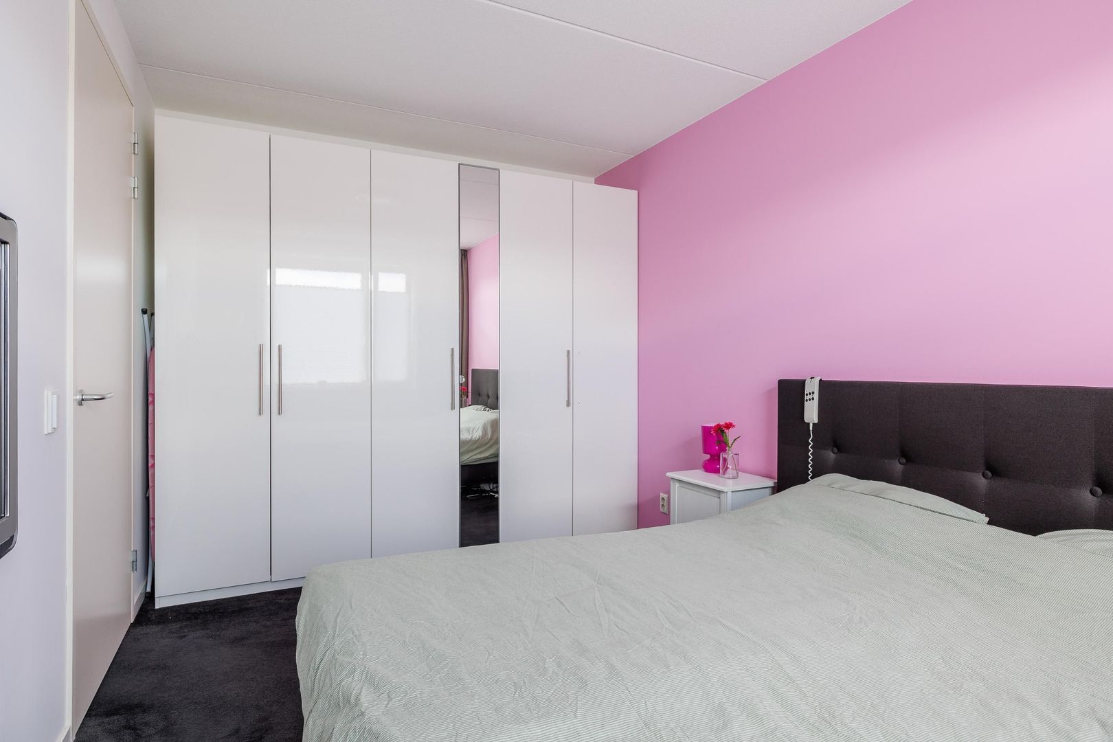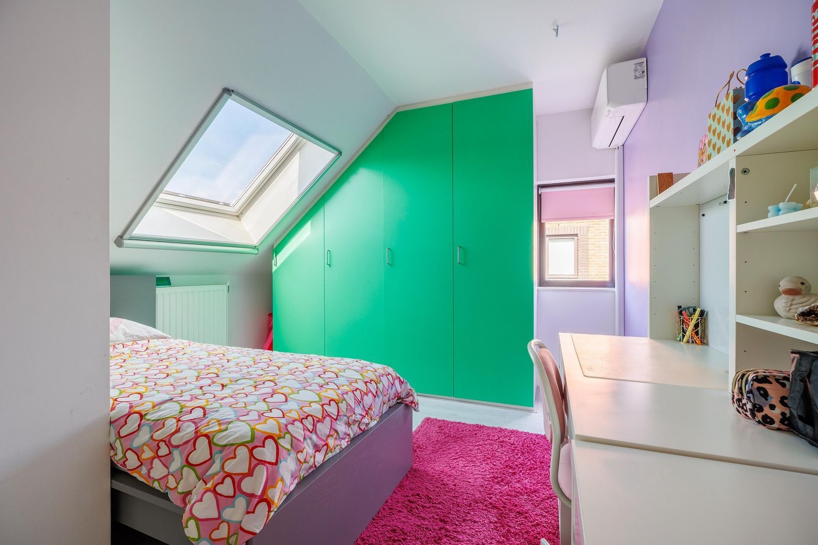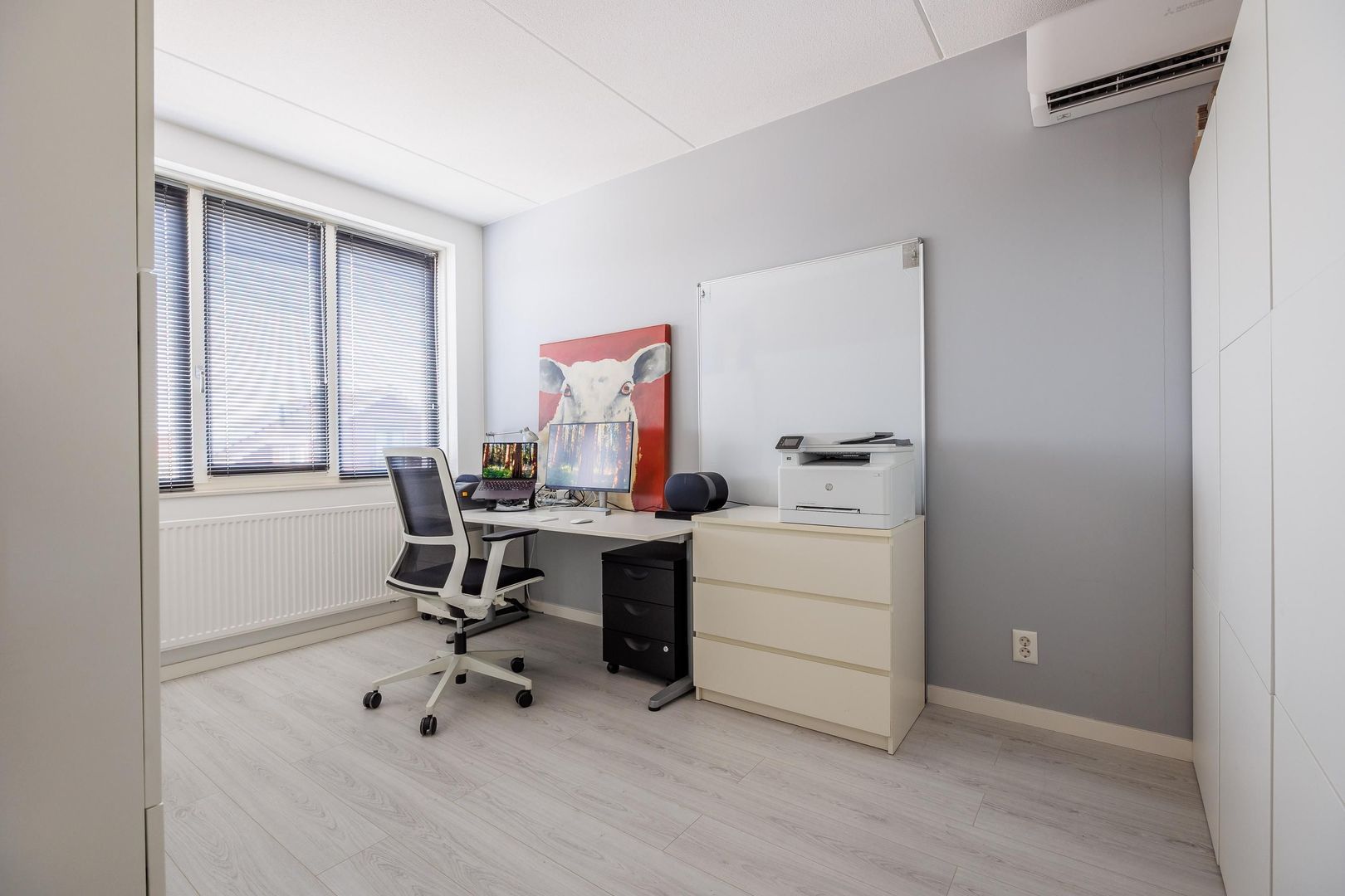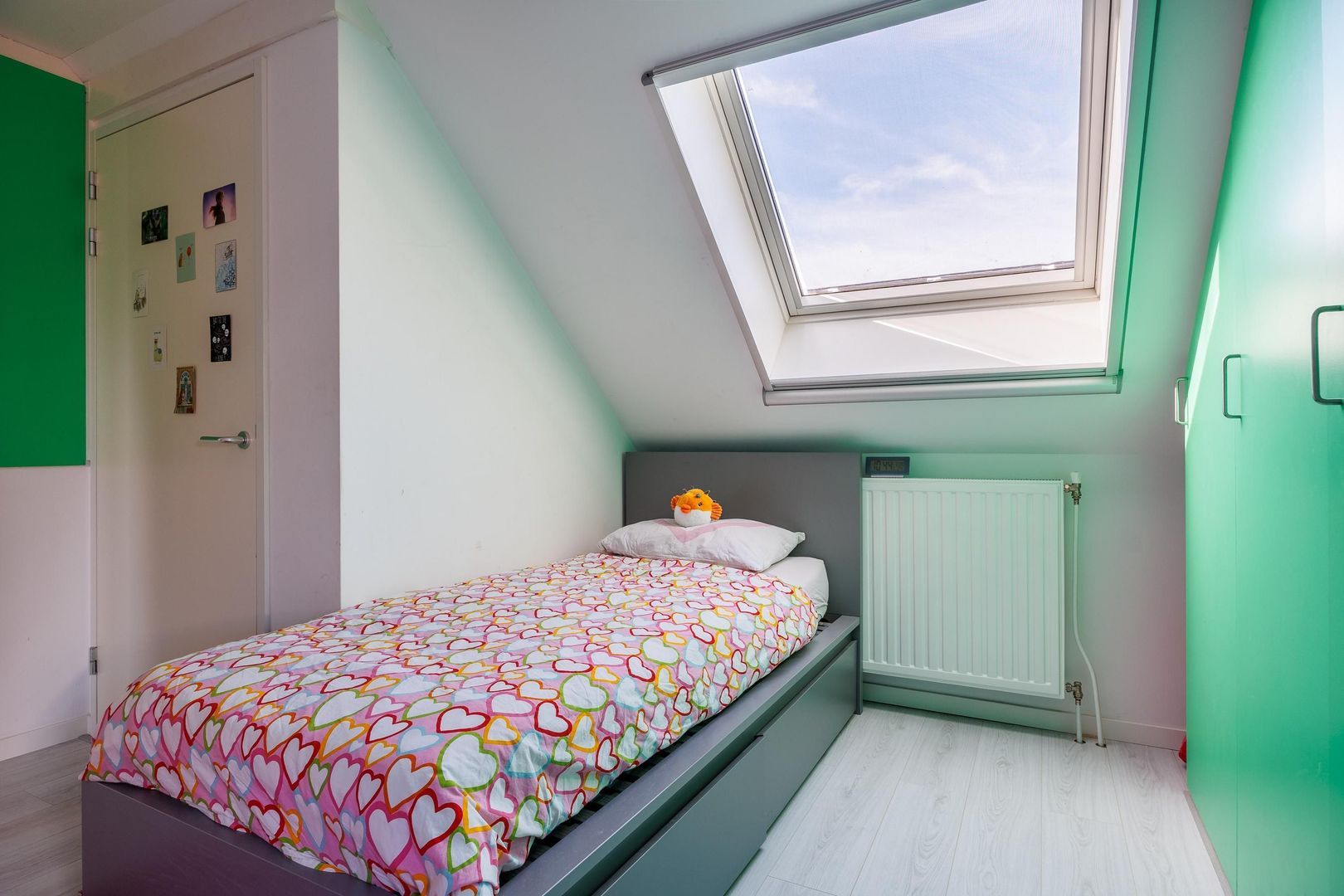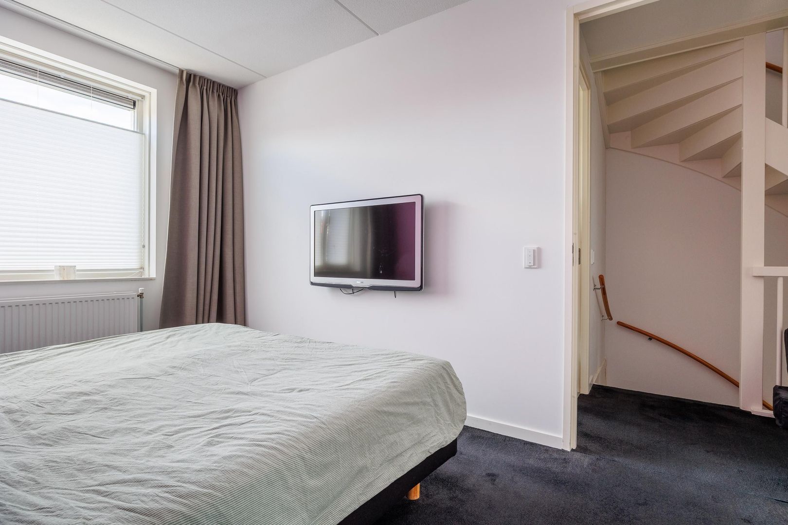 De tweede verdieping verrast met nog eens twee ruime slaapkamers, beide voorzien van een vaste kast. De slaapkamer aan de achterzijde beschikt daarnaast over een dakkapel, waardoor er extra ruimte en lichtinval ontstaat. Op de andere slaapkamer is er een airco aanwezig, zodat het klimaat altijd aangenaam is. Verder is er een aparte ruimte ingericht voor de wasmachine en droger, wat de verdieping praktisch en overzichtelijk maakt. Ook is er middels een vlizotrap een zolderberging bereikbaar, ideaal voor het opbergen van seizoensspullen en andere zaken die je niet dagelijks nodig hebt.