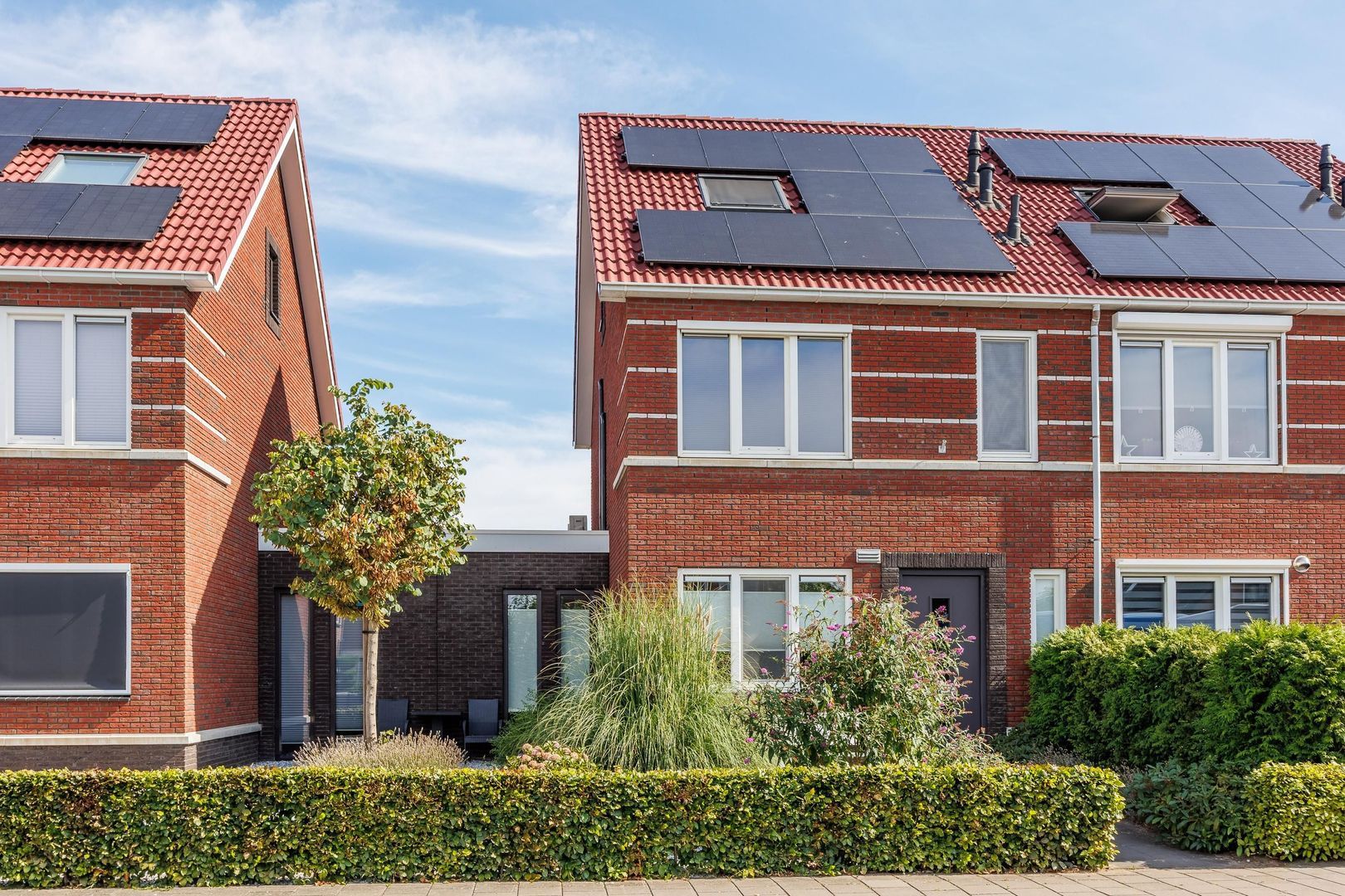 De woning is volledig voorbereid op de toekomst. Zo liggen er maar liefst 28 zonnepanelen op het dak, waarvan 18 ideaal zijn gericht op het zuidoosten en 10 op het zuidwesten. De opgewekte energie wordt bovendien efficiënt opgeslagen in een krachtige thuisbatterij van 20 kWh, waardoor je optimaal profiteert van eigen zonne-energie, ook op momenten dat de zon niet schijnt. Daarnaast is er een laadpaal aanwezig, zodat je eenvoudig en voordelig je elektrische auto thuis kunt opladen.