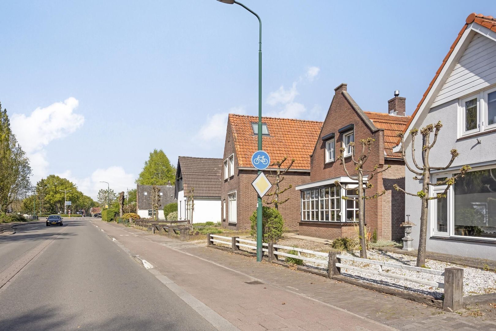 Bij aankomst valt direct de royale oprit op, die plaats biedt aan meerdere auto's en leidt naar de toegangspoort. Dit royale perceel biedt een uitzonderlijke mate van privacy en ruimte, iets wat tegenwoordig een zeldzaamheid is.