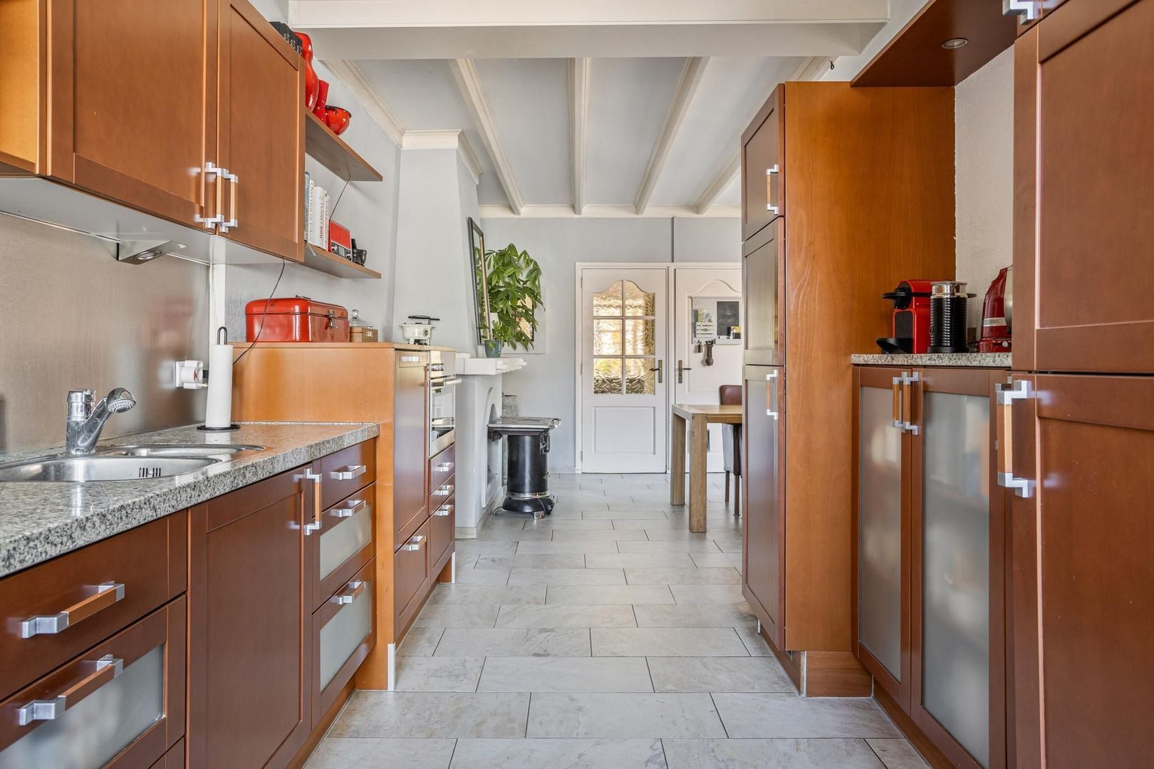 Bij binnenkomst van de woning betreedt u de hal die toegang geeft tot de royale eetkeuken. Deze keuken is het hart van de woning en een plek waar zowel de dagelijkse maaltijden als uitgebreide diners tot hun recht komen. Voorzien van alle benodigde apparatuur en een praktische indeling is dit de ideale plek voor elke kookliefhebber.
