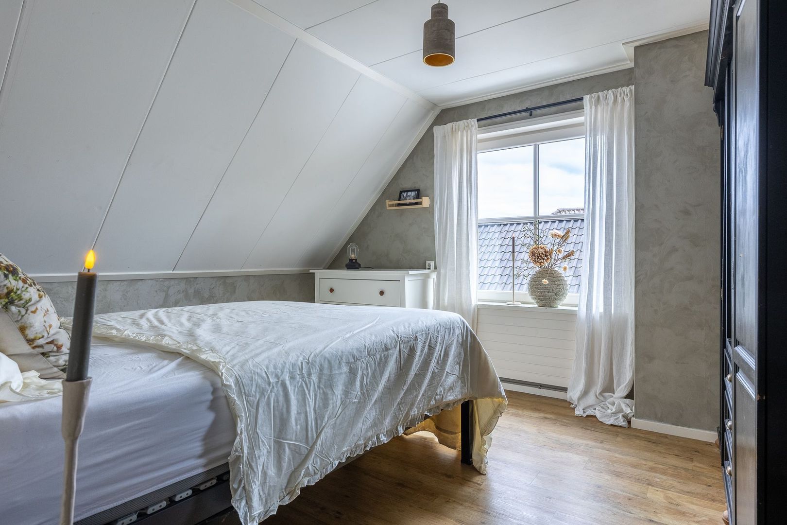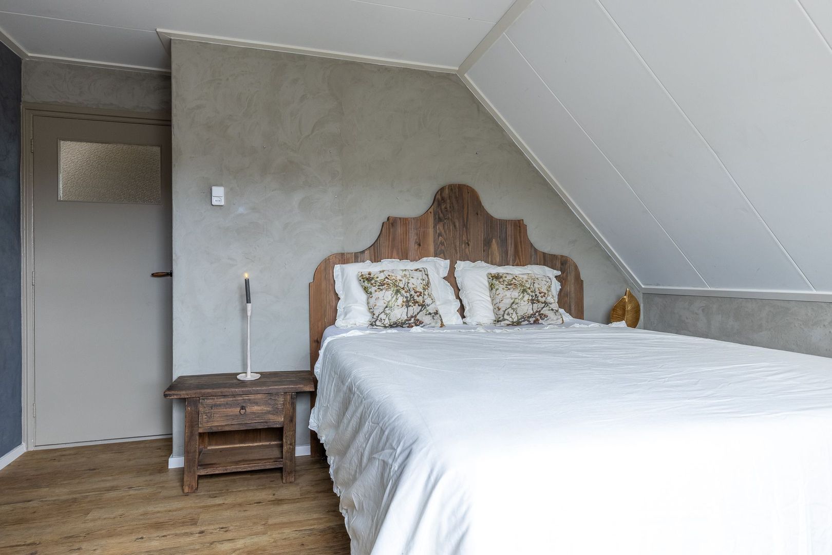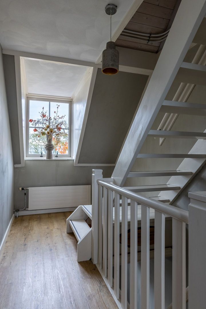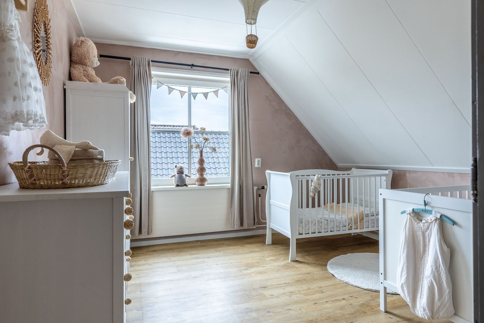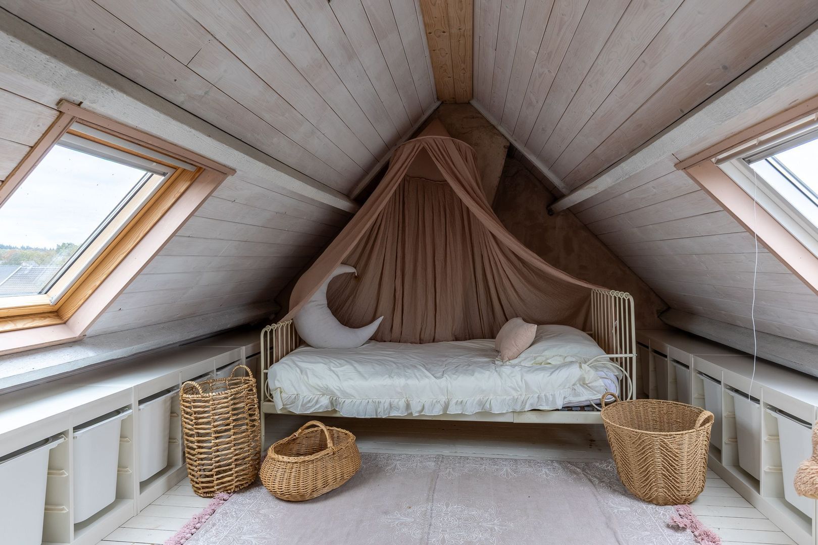 Op de eerste verdieping bevinden zich twee ruime slaapkamers en een complete badkamer met ligbad, douche, toilet, wastafel en vloerverwarming. De vaste trap leidt naar de zolderverdieping met extra bergruimte en een gezellige (kinder)kamer. Ook hier zorgt een airco-unit voor comfort in zomer en winter.