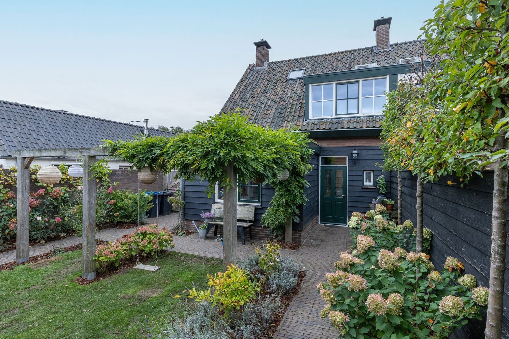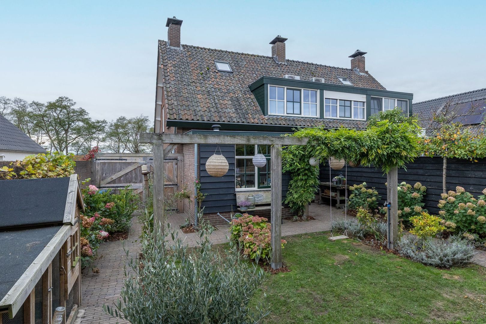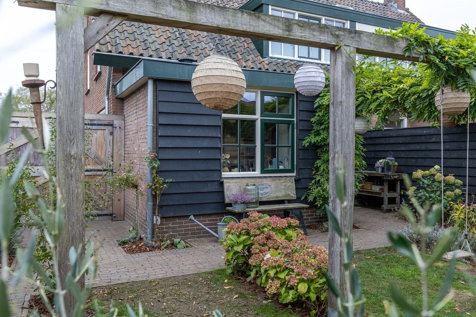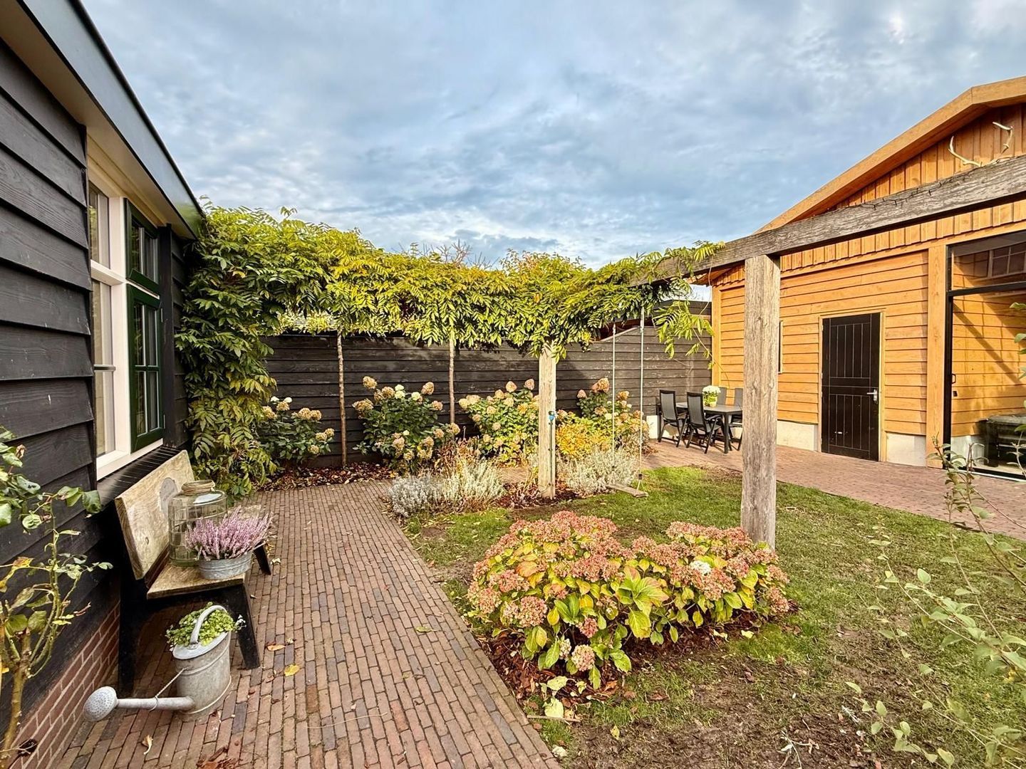 De tuin is een waar pareltje: sfeervol aangelegd met groen, terras en een royale veranda met aangrenzende schuur. De veranda is een heerlijke plek om het hele jaar door te genieten — met een houtkachel, keukenblok en glazen schuifpui is het dé ideale plek voor lange zomeravonden of knusse winterdagen.