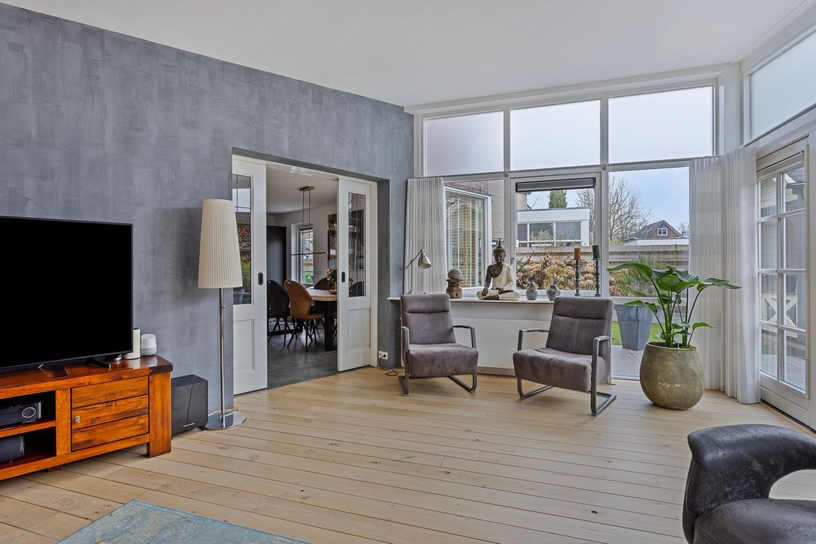 - Gehele woning is voorzien van dubbel glas HR+, openslaande deuren woonkamer HR++