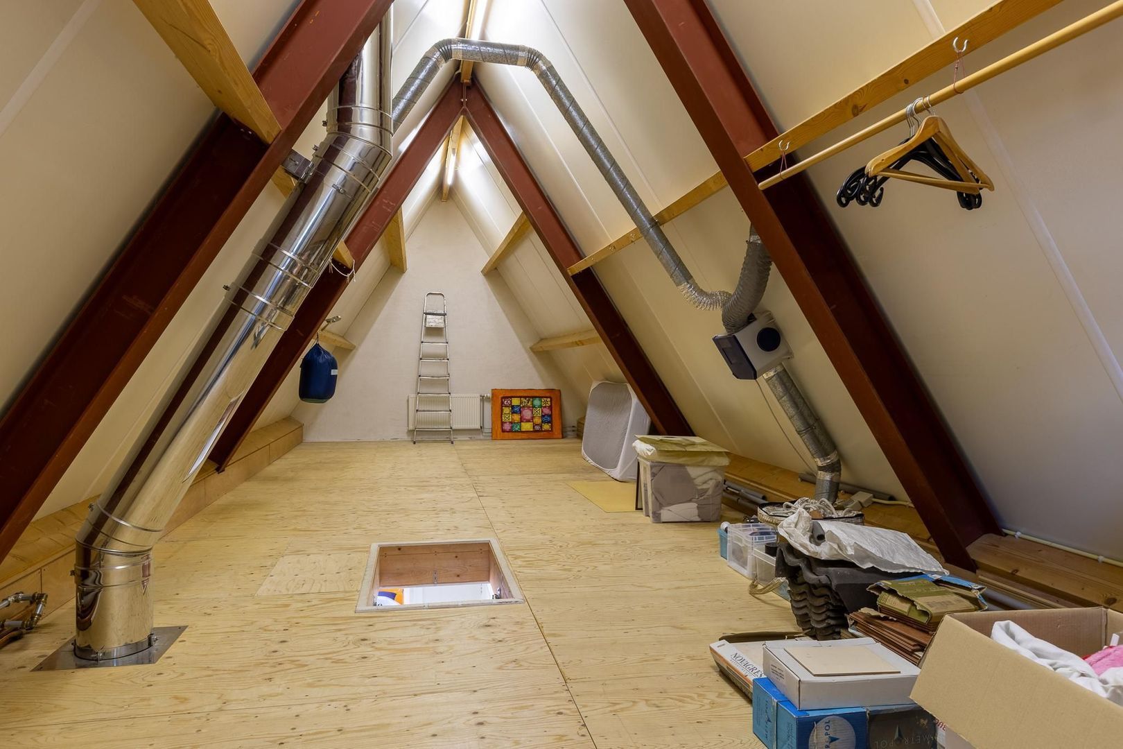 De tweede verdieping, bereikbaar via een vlizotrap, is momenteel in gebruik als opbergruimte. Ideaal voor het opbergen van spullen die je niet dagelijks nodig hebt. Maar het is ook een optie om hier met een vaste trap extra kamers te creëren.