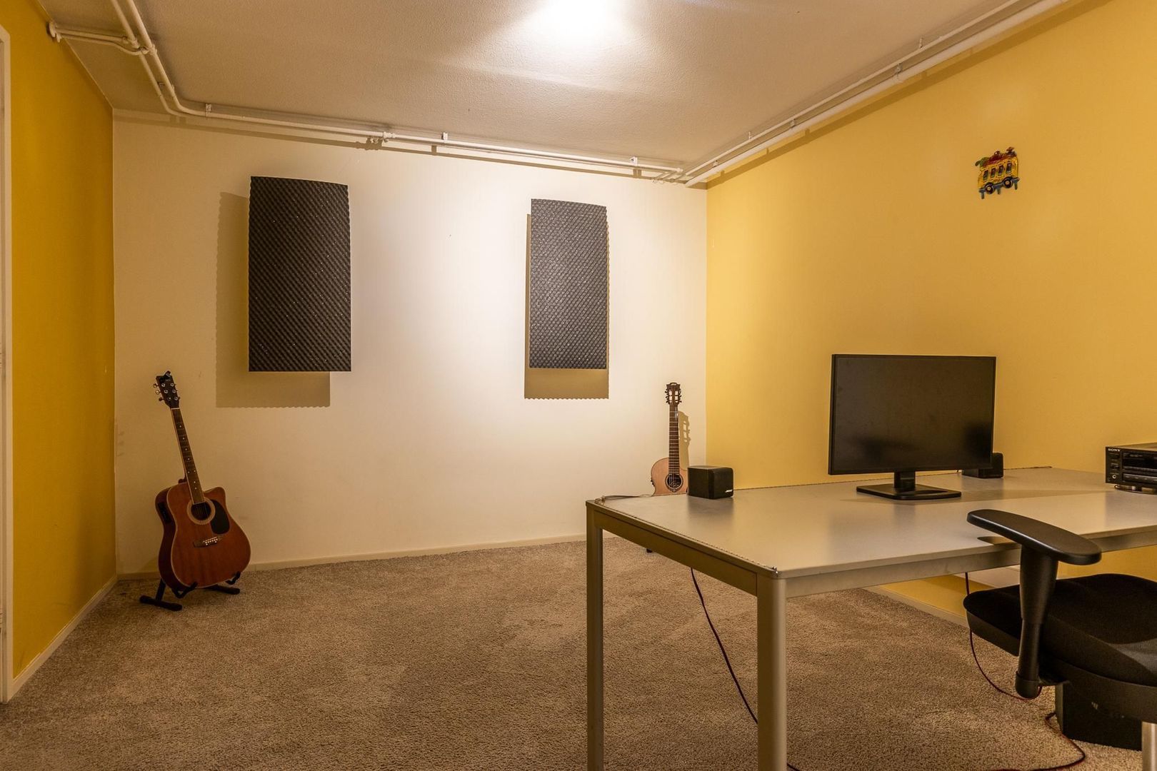 Het souterrain is even groot als de begane grond en is opgedeeld in drie aparte ruimtes. De grootste ruimte, voorzien van een kastenwand, is ideaal als kantoor, sportruimte, speelruimte of eventueel als gastenverblijf. De tweede ruimte is momenteel in gebruik als muziekkamer, een droom voor elke muziekliefhebber. De derde ruimte is een ware wellnessruimte, compleet met sauna (infrarood en Fins), ligbad, douche, wastafel en toilet. Hier kun je heerlijk ontspannen na een lange werkdag.