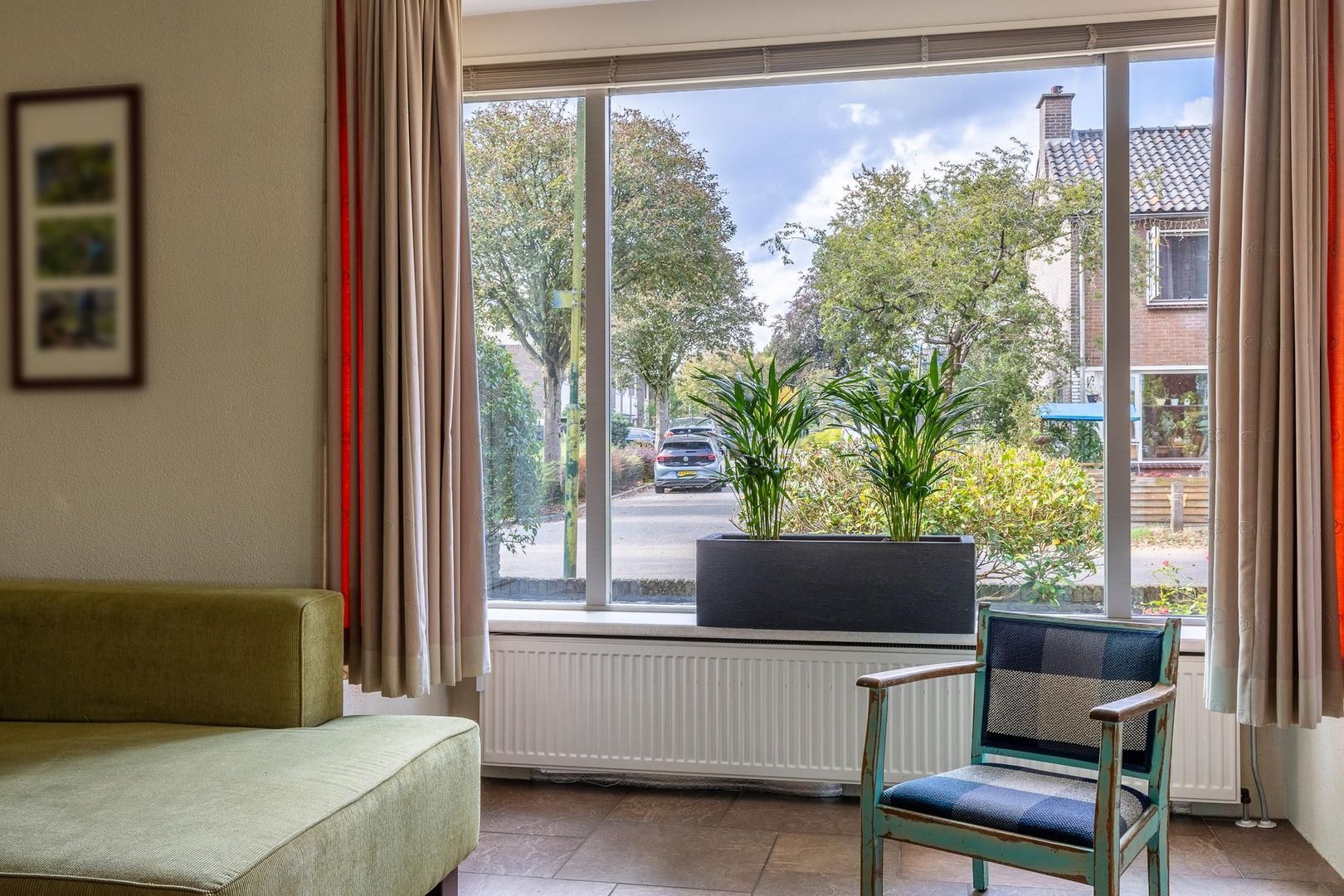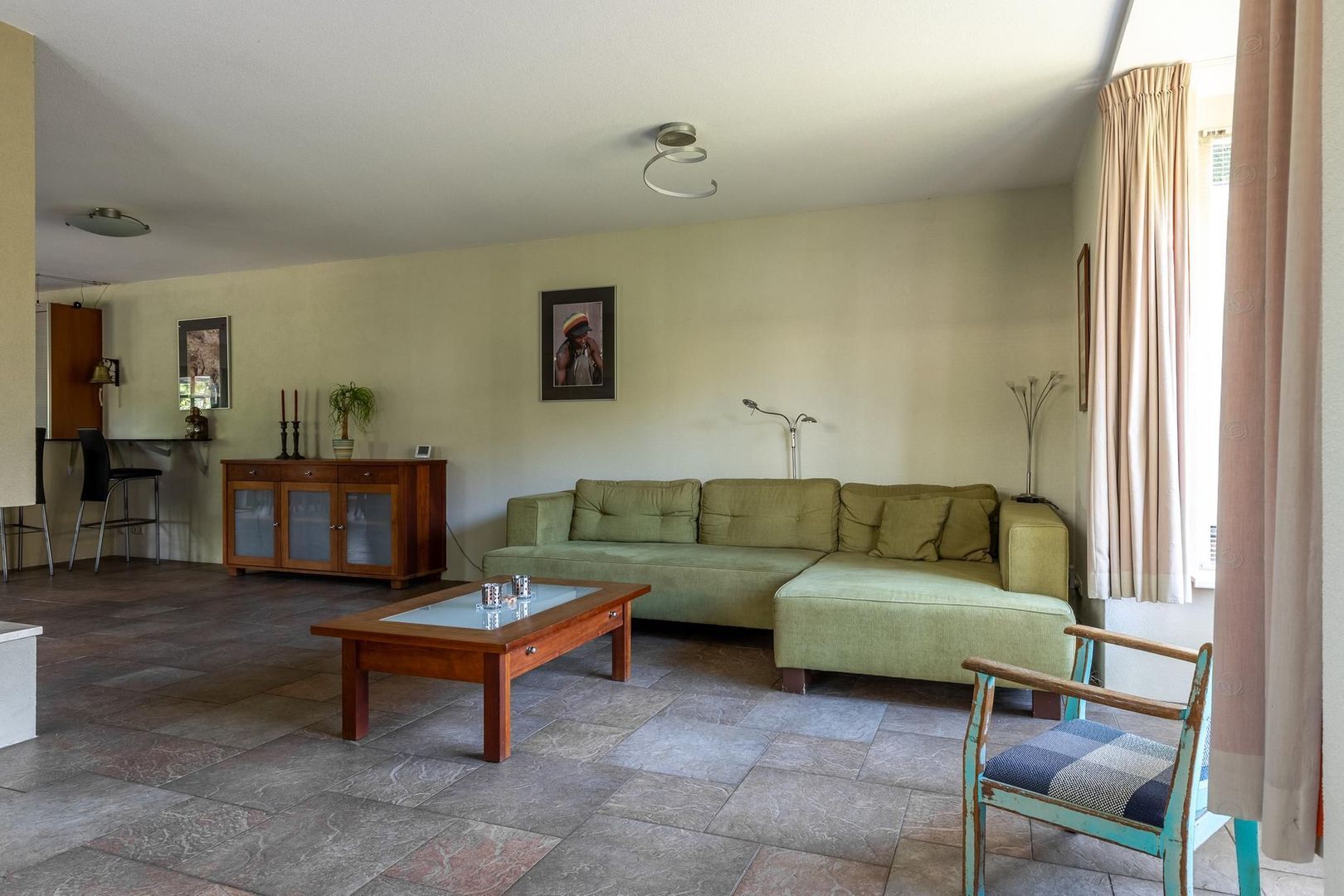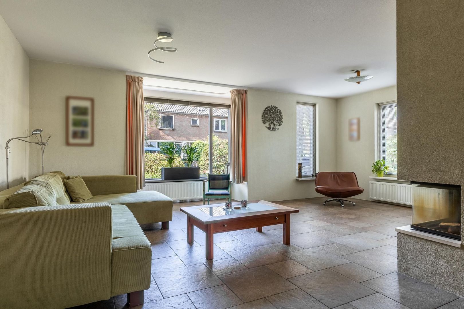 Bij binnenkomst in het woonhuis word je begroet door een zeer ruime woonkamer. De erker zorgt voor een fijne lichtinval en biedt een vrij uitzicht richting de Schermlaan. De gezellige openhaard zorgt voor een warme en uitnodigende sfeer, ideaal voor koude winteravonden of gewoon voor een gezellige avond met familie en vrienden.