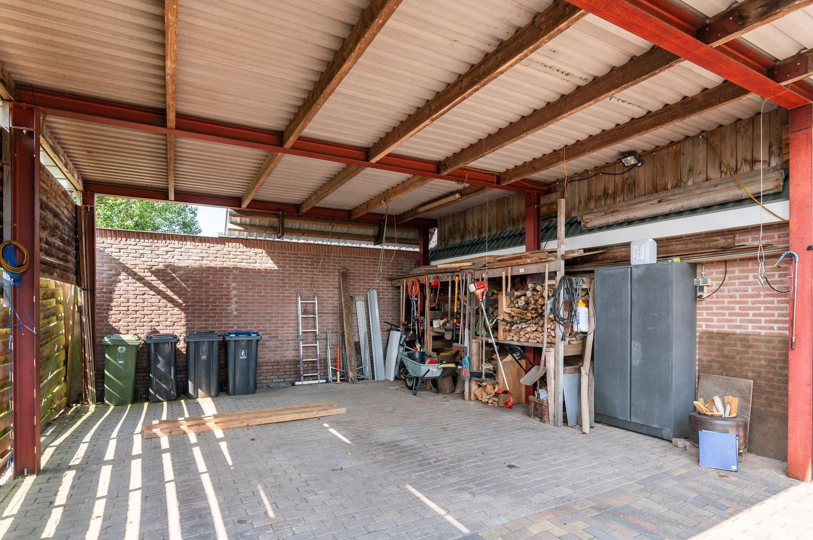 Achter de garage is er een grote carport geplaatst, die qua hoogte ook zeker geschikt is om je camper, caravan of boot te stallen.