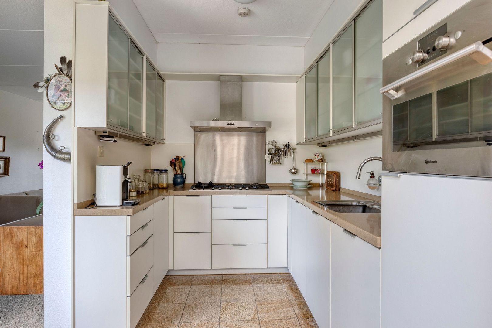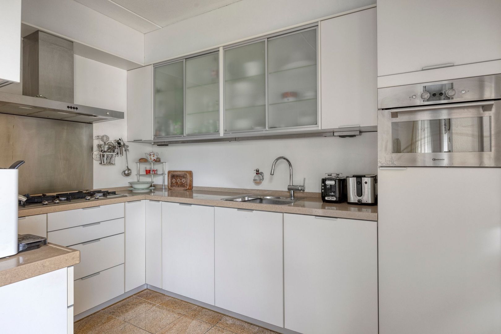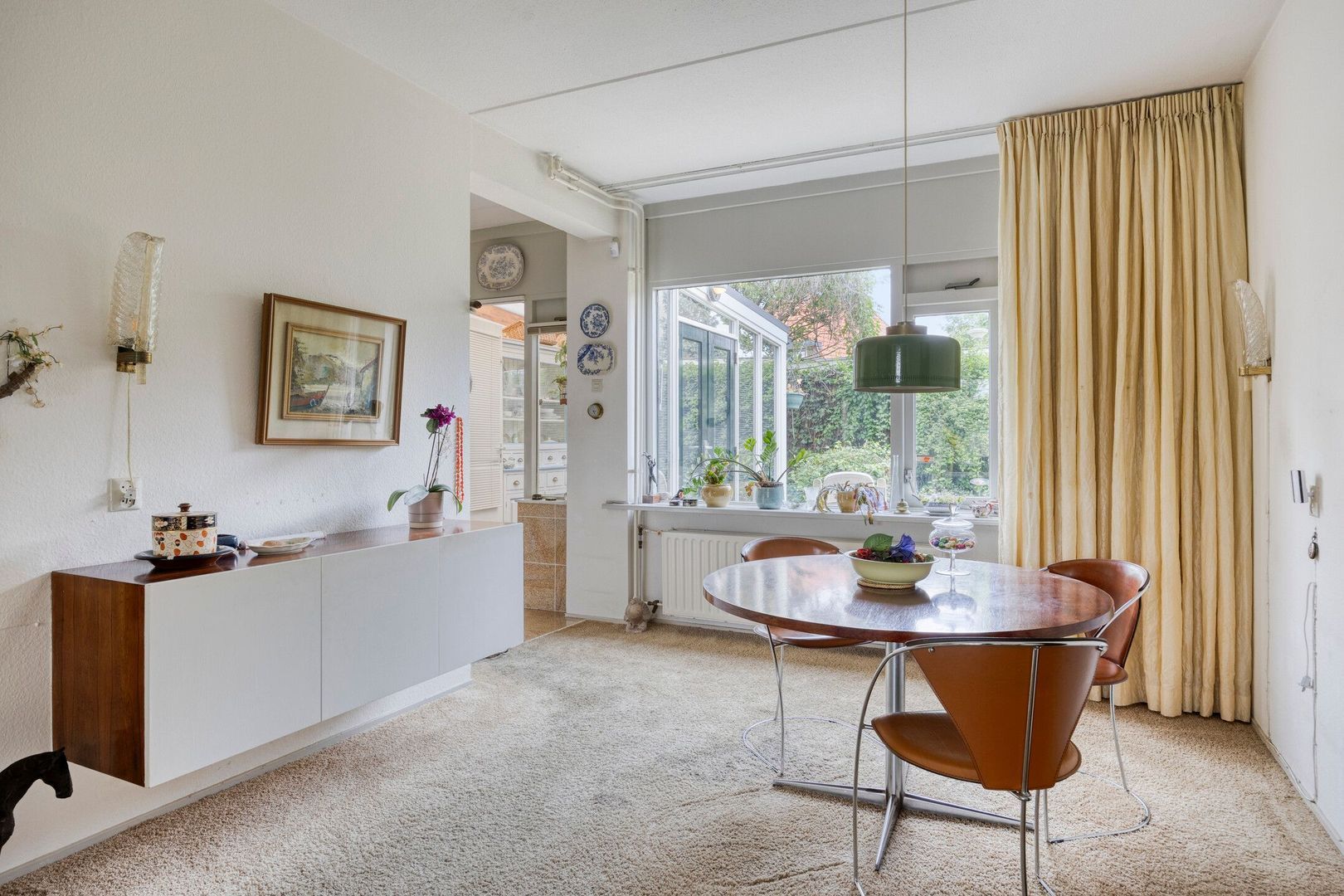 Bij binnenkomst valt direct de lichte en ruime woonkamer op, met voldoende plek voor zowel een gezellige zithoek als een royale eethoek. Vanuit de eethoek is er een doorgang naar de halfopen keuken. De keuken is ingericht met een royale opstelling en voorzien van diverse inbouwapparatuur. Aangrenzend bevindt zich een kleine serre met twee openslaande deuren naar de tuin.