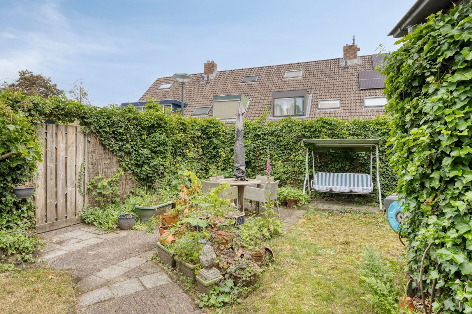 De achtertuin ligt op het noorden en de zijtuin op het oosten, waardoor er altijd wel een fijne plek te vinden is in de zon of schaduw. Via de poort in de achtertuin is de garage bereikbaar, ideaal voor het stallen van fietsen, gereedschap of het parkeren van een auto.