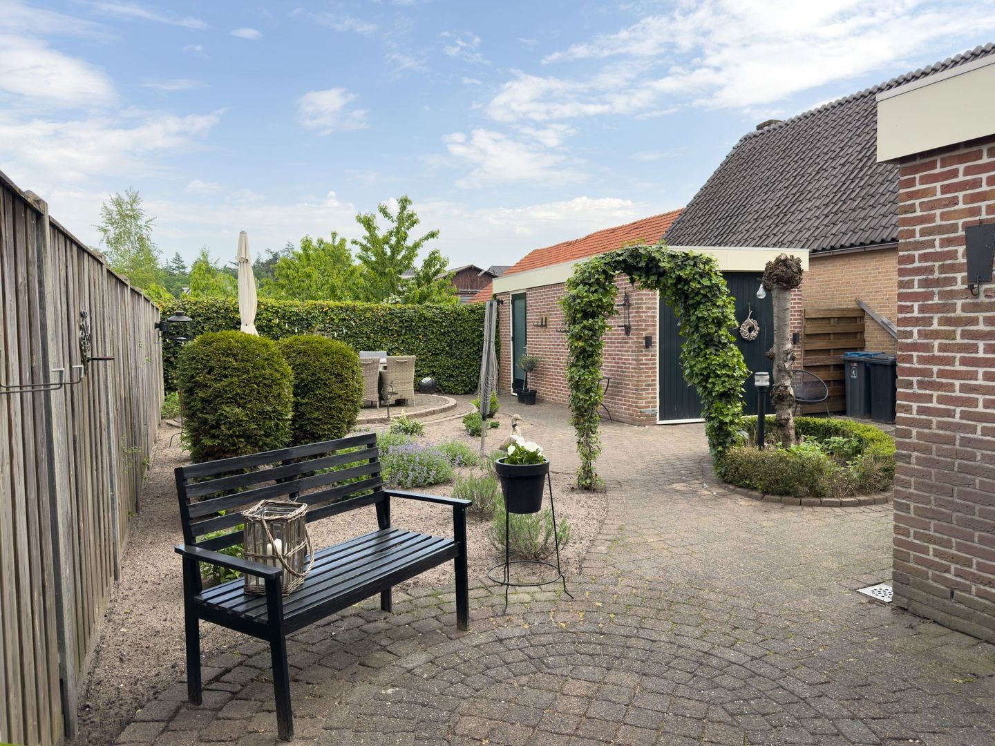 Achter op het perceel staat de vrijstaande garage. Een ideale plek om je auto te parkeren maar ook om je fietsen te stallen en opbergen van (tuin) gereedschap.