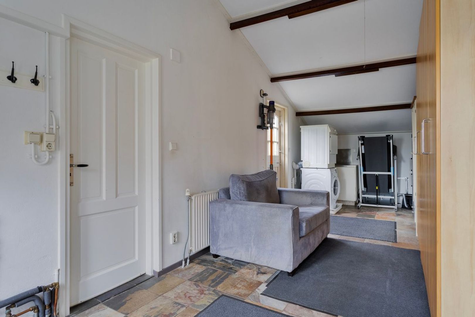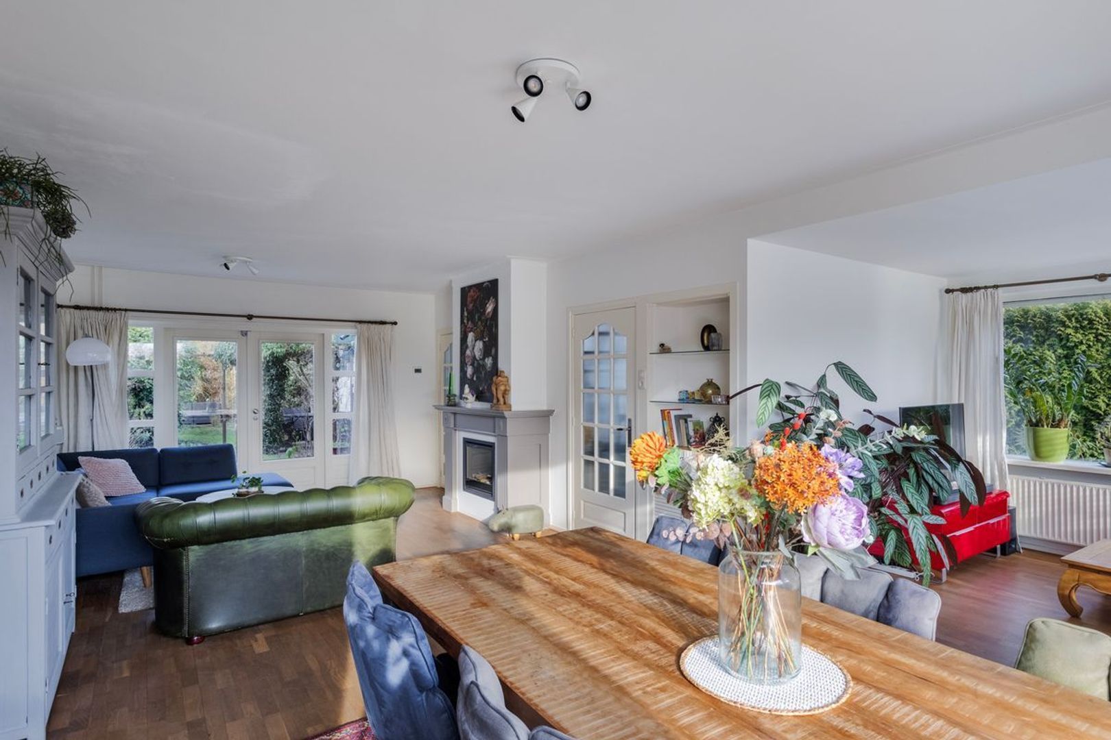 Bij aankomst word je meteen verwelkomd door de charmante uitstraling van deze woning. De speelse indeling en de warme sfeer stralen je tegemoet. De royale woonkamer is het hart van het huis, waar je direct het gevoel van thuiskomen ervaart. Hier vind je een sfeervolle gashaard die zorgt voor een knusse ambiance tijdens de koudere maanden. De grote raampartijen bieden niet alleen een prachtig uitzicht op de straat en de omliggende weilanden, maar laten ook een overvloed aan natuurlijk licht binnenstromen. De openslaande deuren naar de achtertuin nodigen uit om op zonnige dagen de leefruimte naar buiten uit te breiden, waar je kunt genieten van het groen om je heen.