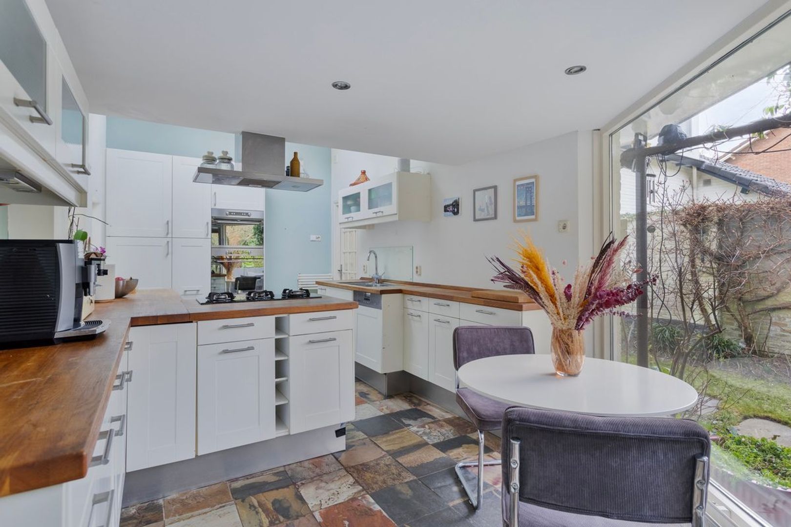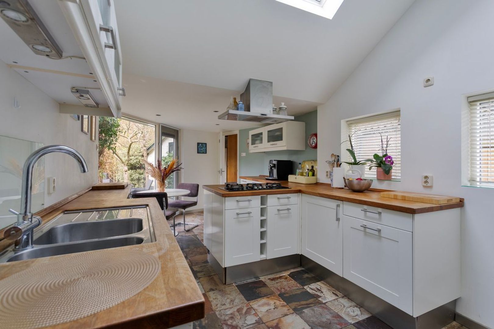 De woonkeuken is een ware droom voor iedere kookliefhebber. Met een ruime keukenopstelling voorzien van moderne inbouwapparatuur, biedt deze ruimte alles wat je nodig hebt om de heerlijkste maaltijden te bereiden. Een bijzonder detail zijn de grote Velux dakramen, die niet alleen zorgen voor extra lichtinval, maar ook een unieke uitstraling geven aan de keuken. Vanuit de keuken heb je toegang tot de bijkeuken/berging, ideaal voor extra opslagruimte en het opbergen van huishoudelijke apparatuur.