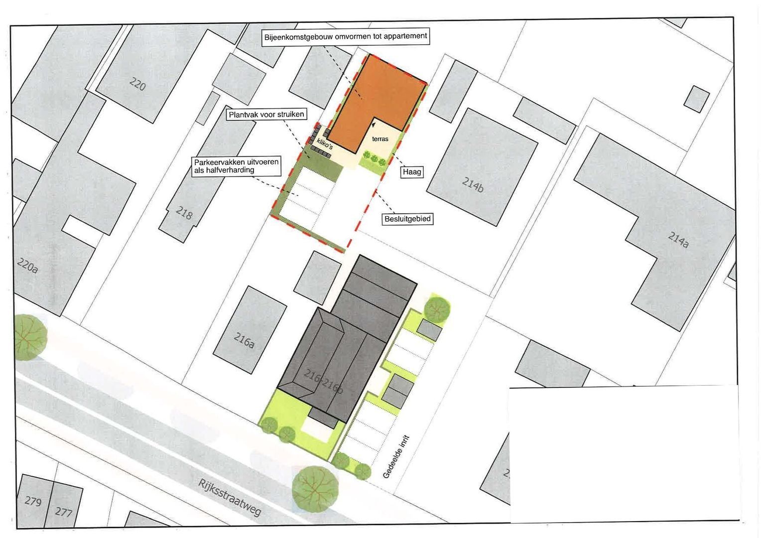 - Een gedeelte van de bestrating moet vervangen worden door groenstrook/tuin (zie hiervoor toegevoegde